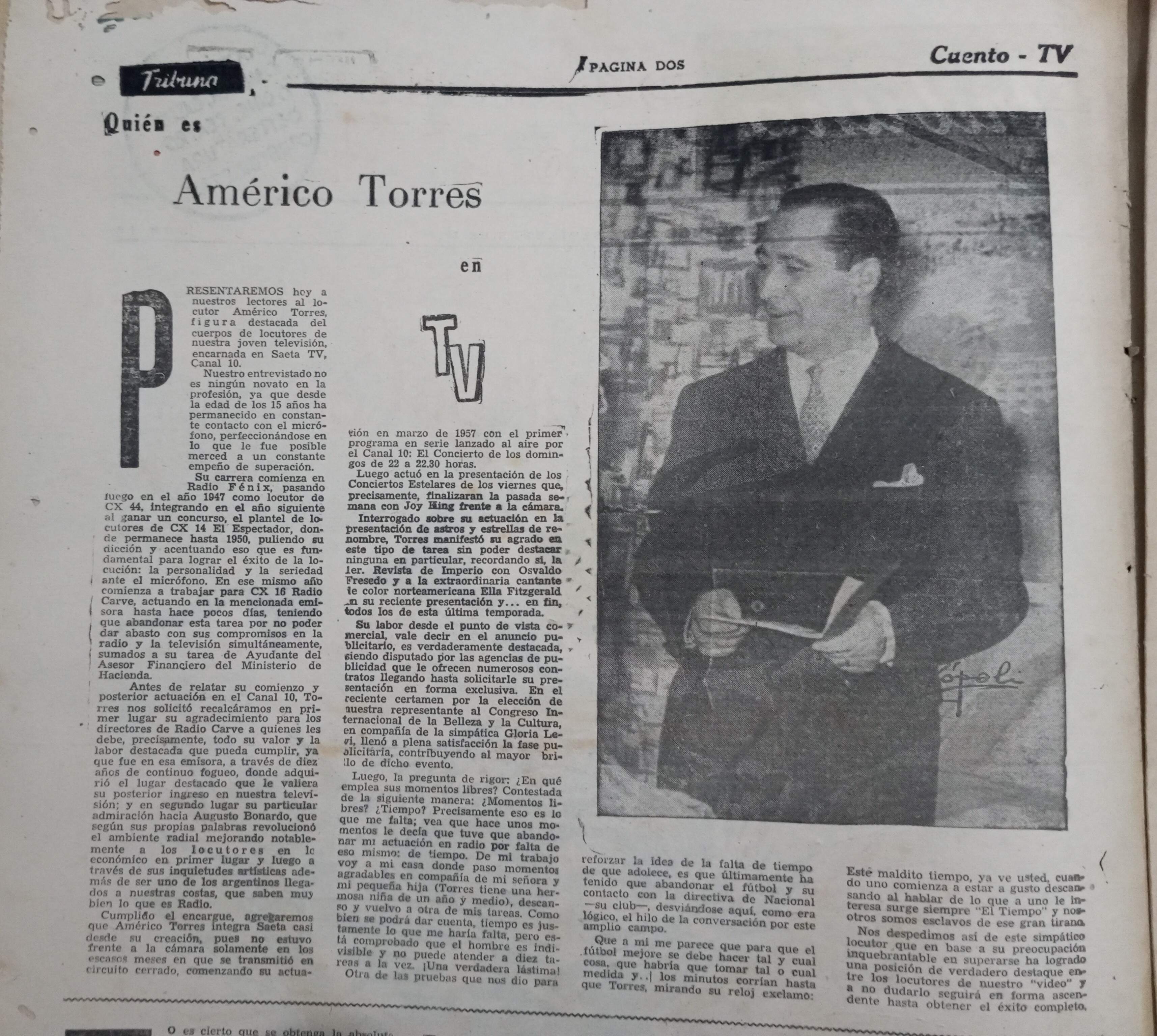 Carlos del Valle. Locutor argentino en Canal 10 . 1958