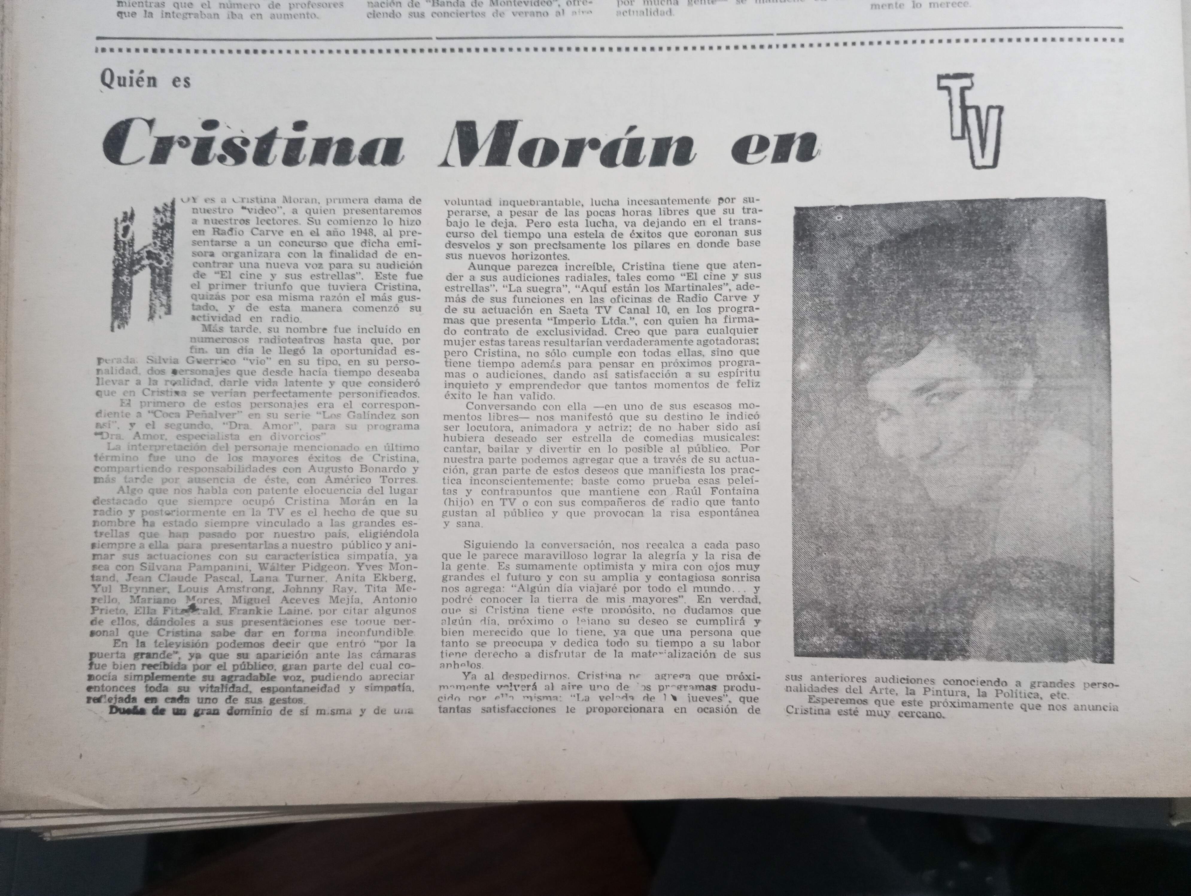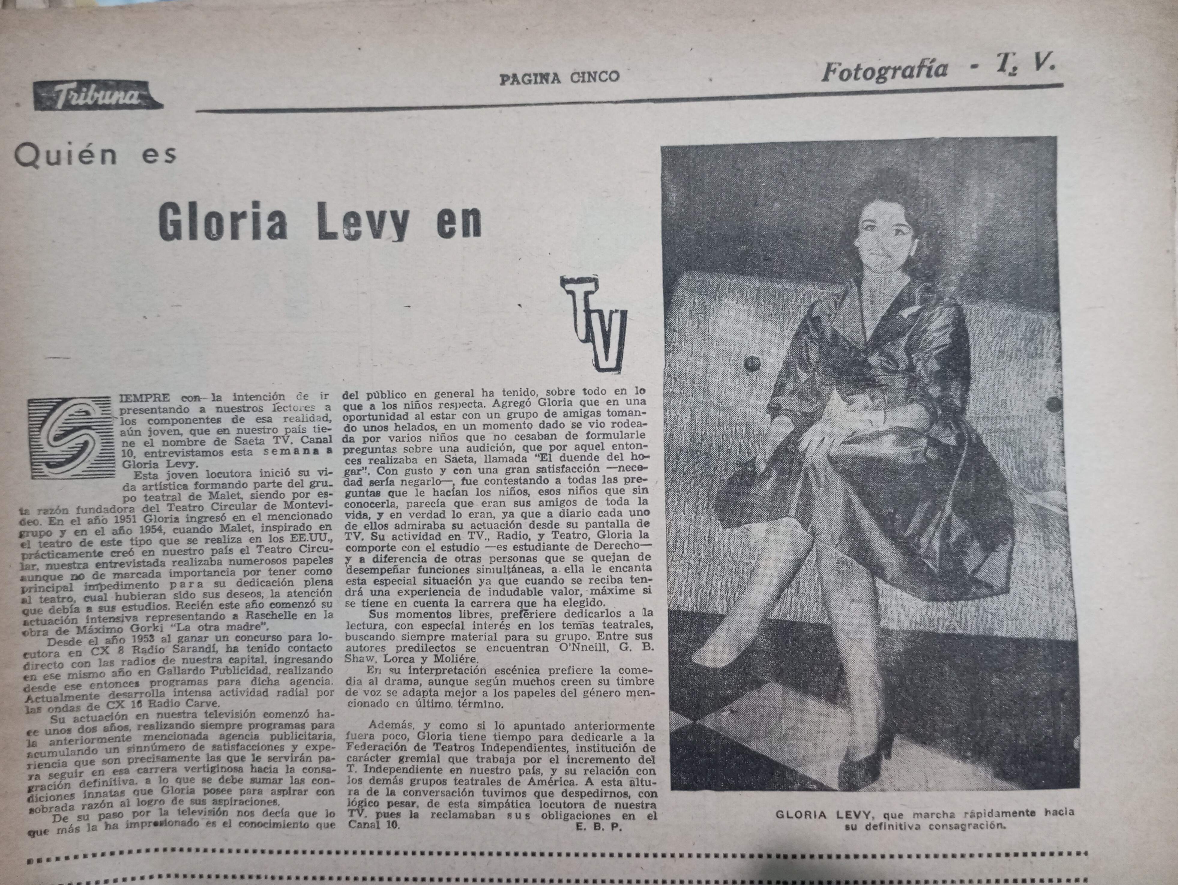 Gloria Levy en suplemento del diario La Tribuna. 1961