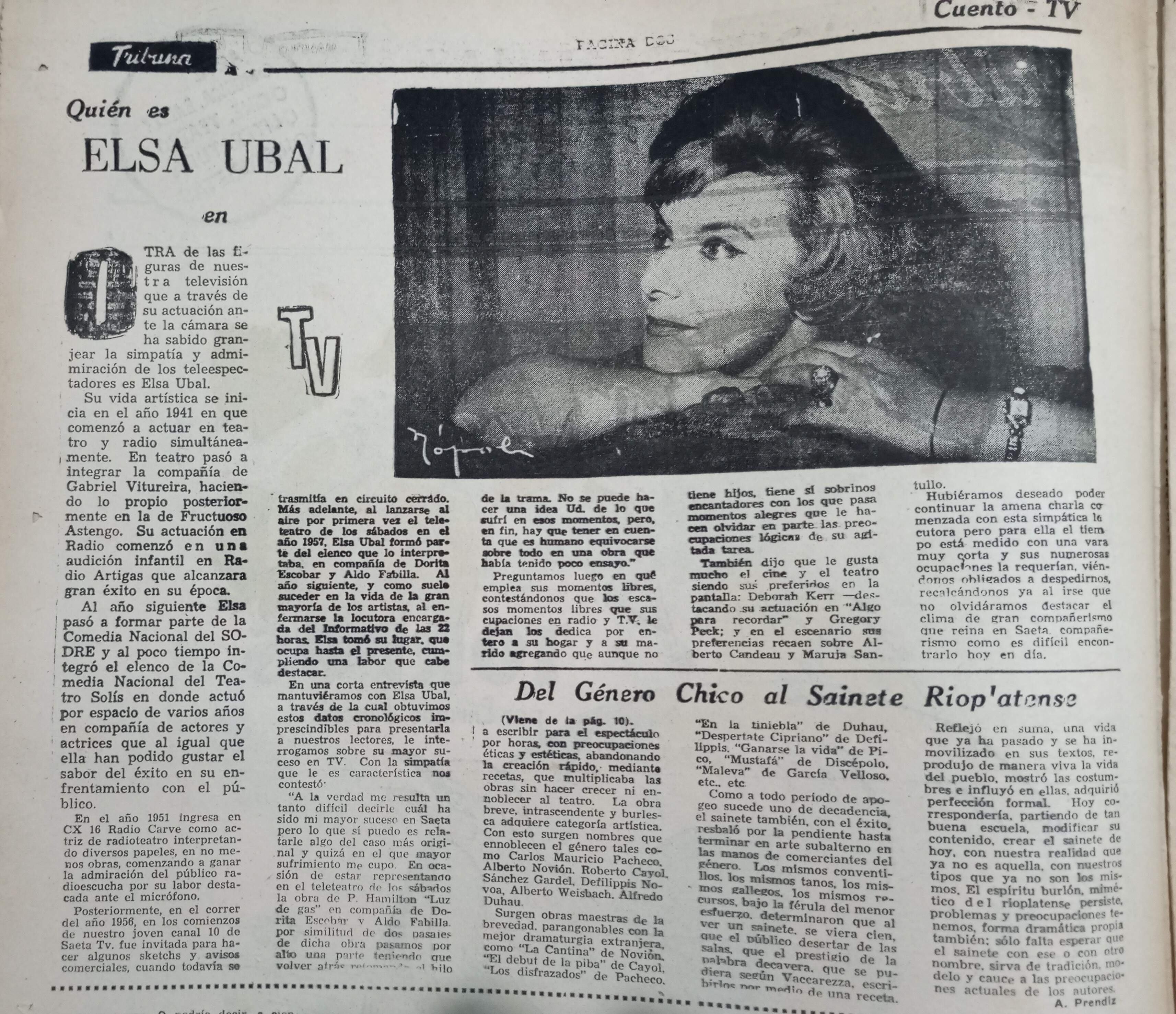 Elsa Ubal en suplemento del diario La Tribuna. 1961