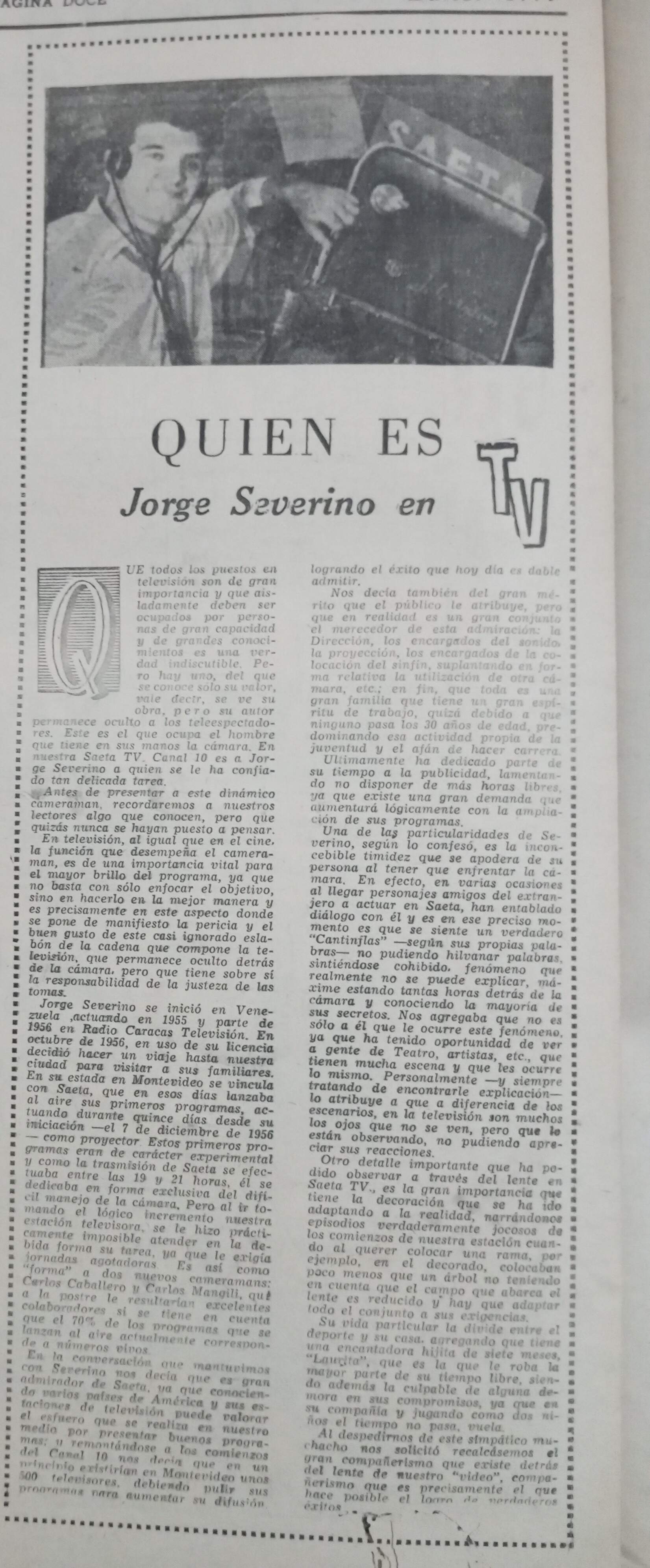 Camarógrafo Jorge Severino en suplemento del diario La Tribuna. 1961
