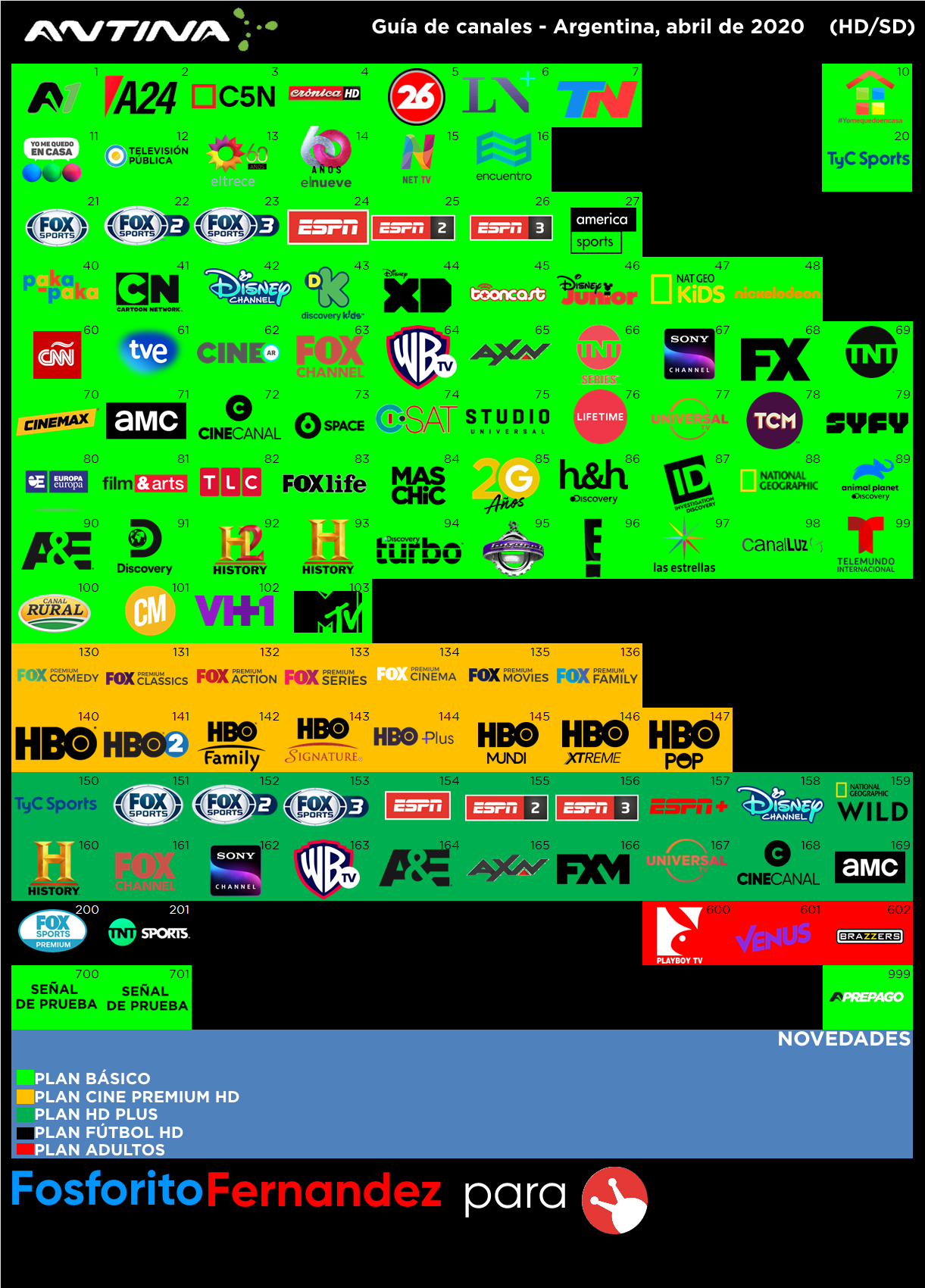 Antina Televisión Digital (Argentina), guía de canales, abril de 2020 (ARGENTINA)