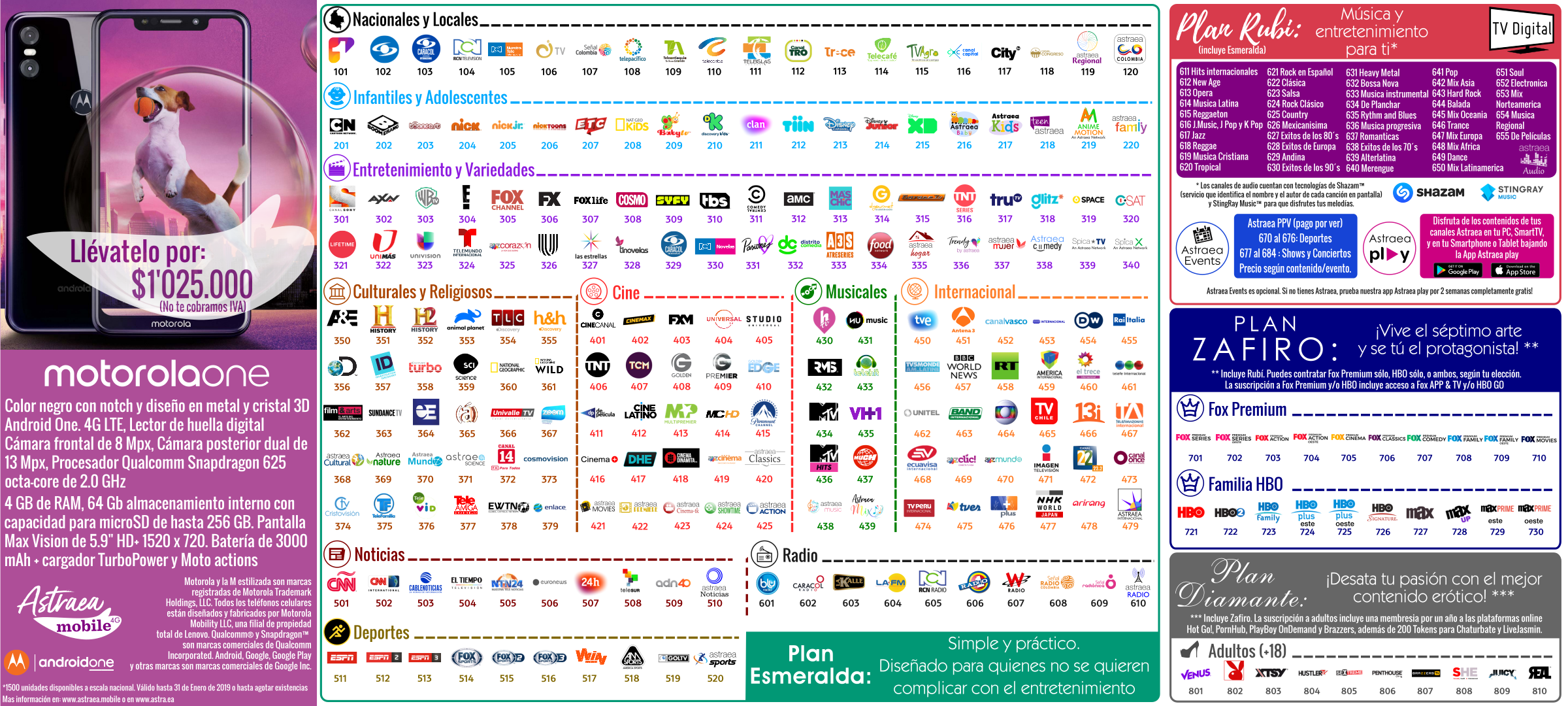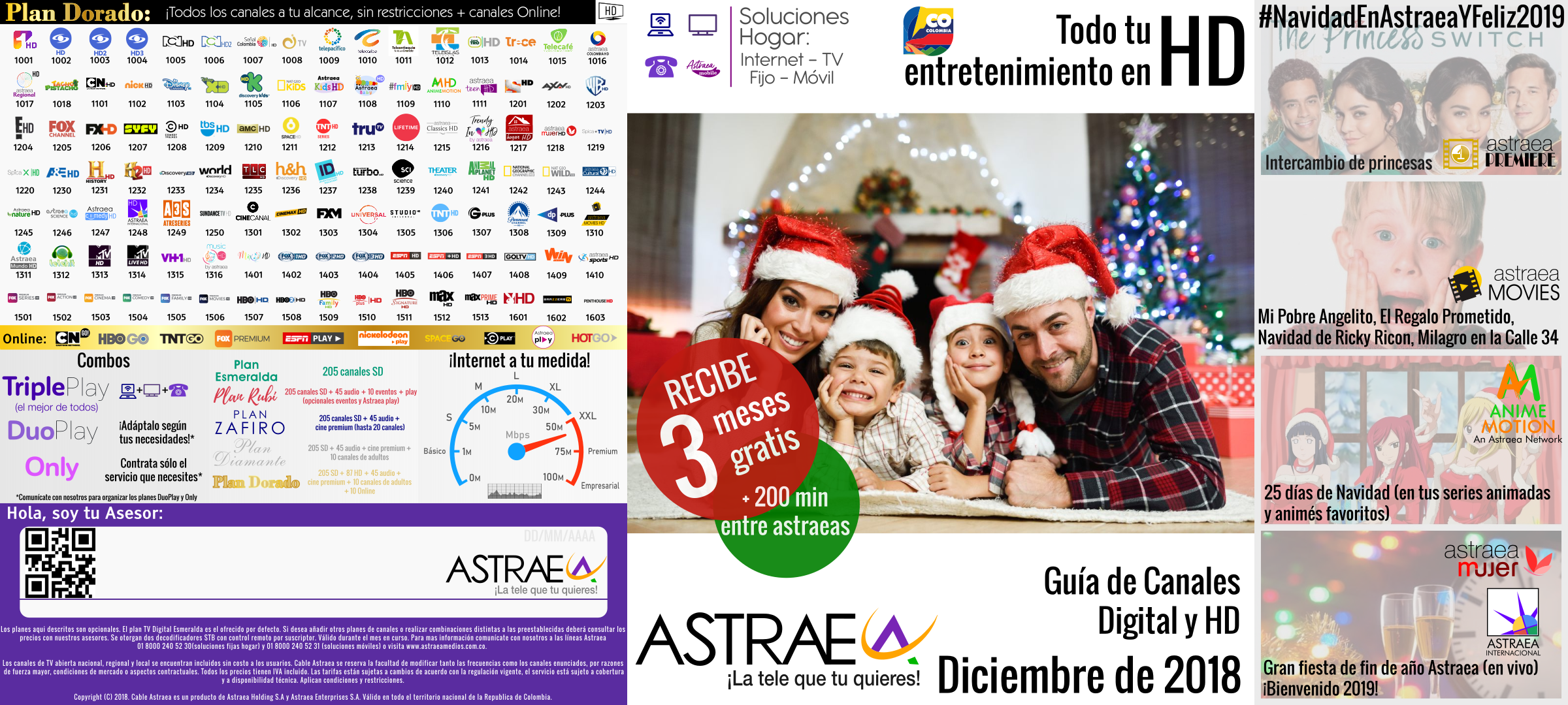 Nuestros canales Astraea serán los primeros en Colombia en ofrecer sensación térmica y la hora en pantalla. Los Canales Astraea mujer, regional, colombia, teen, kids, baby, family, comedy, internacional, noticias, deportes, cultural y hogar exhibirán esta característica desde el 7 de diciembre de 2018.