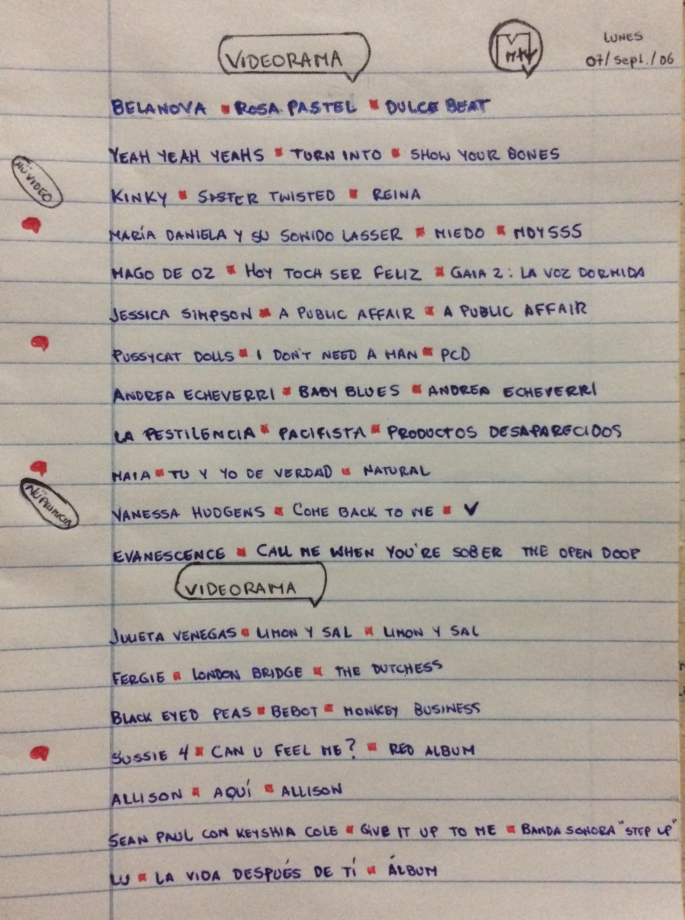 Antes de ser rebrand solo anotaba ARTISTA / CANCIÓN luego en 2007 a la fecha anoto el director del video.