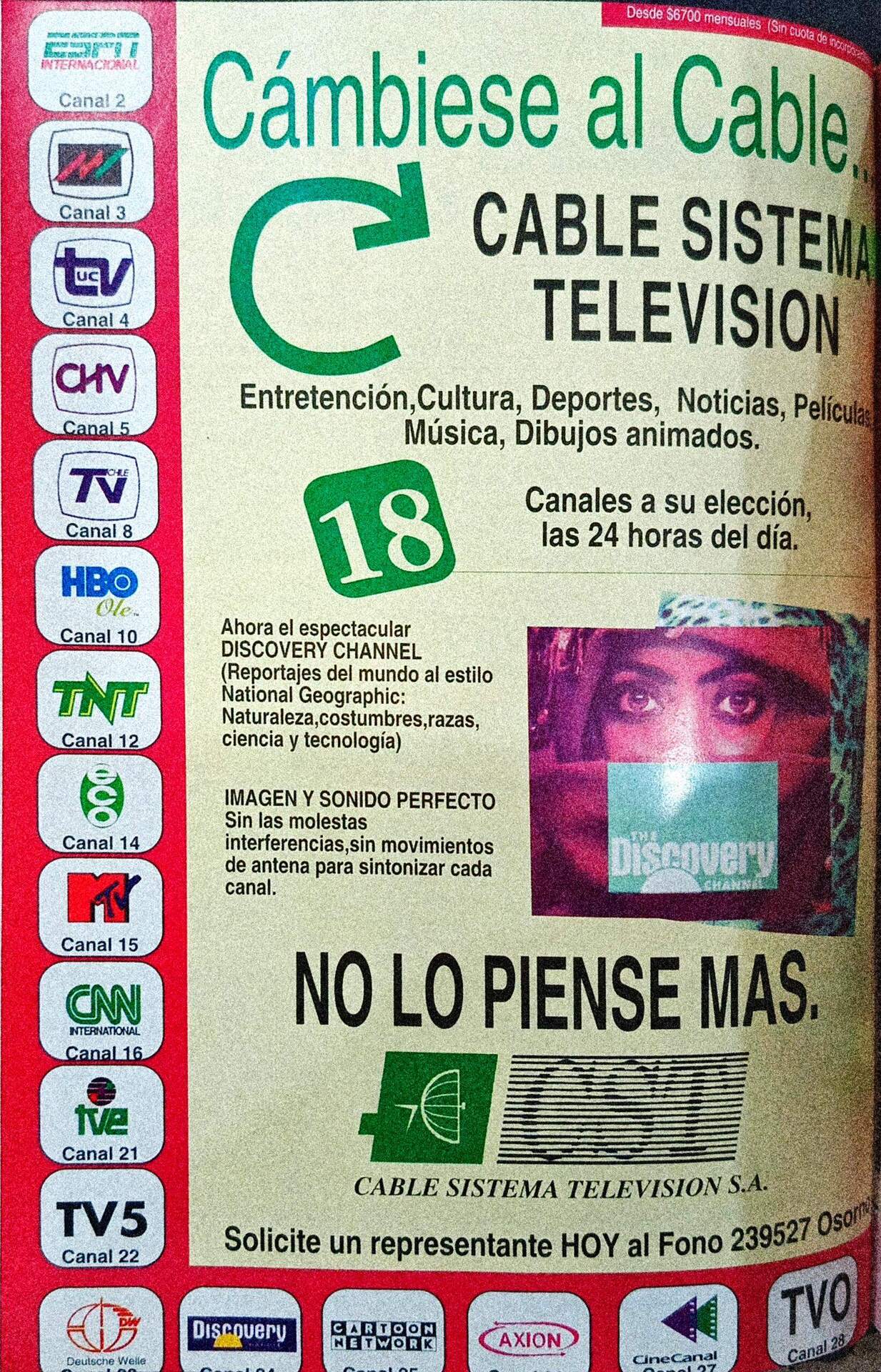 Se trata de “Cable Sistema Televisión”, una empresa de cable en la ciudad de Osorno, que no se sabe nada de la existencia. Aunque tiempo después fue absorbido por VTR para la red “TV Max”. Y el resto es historia.