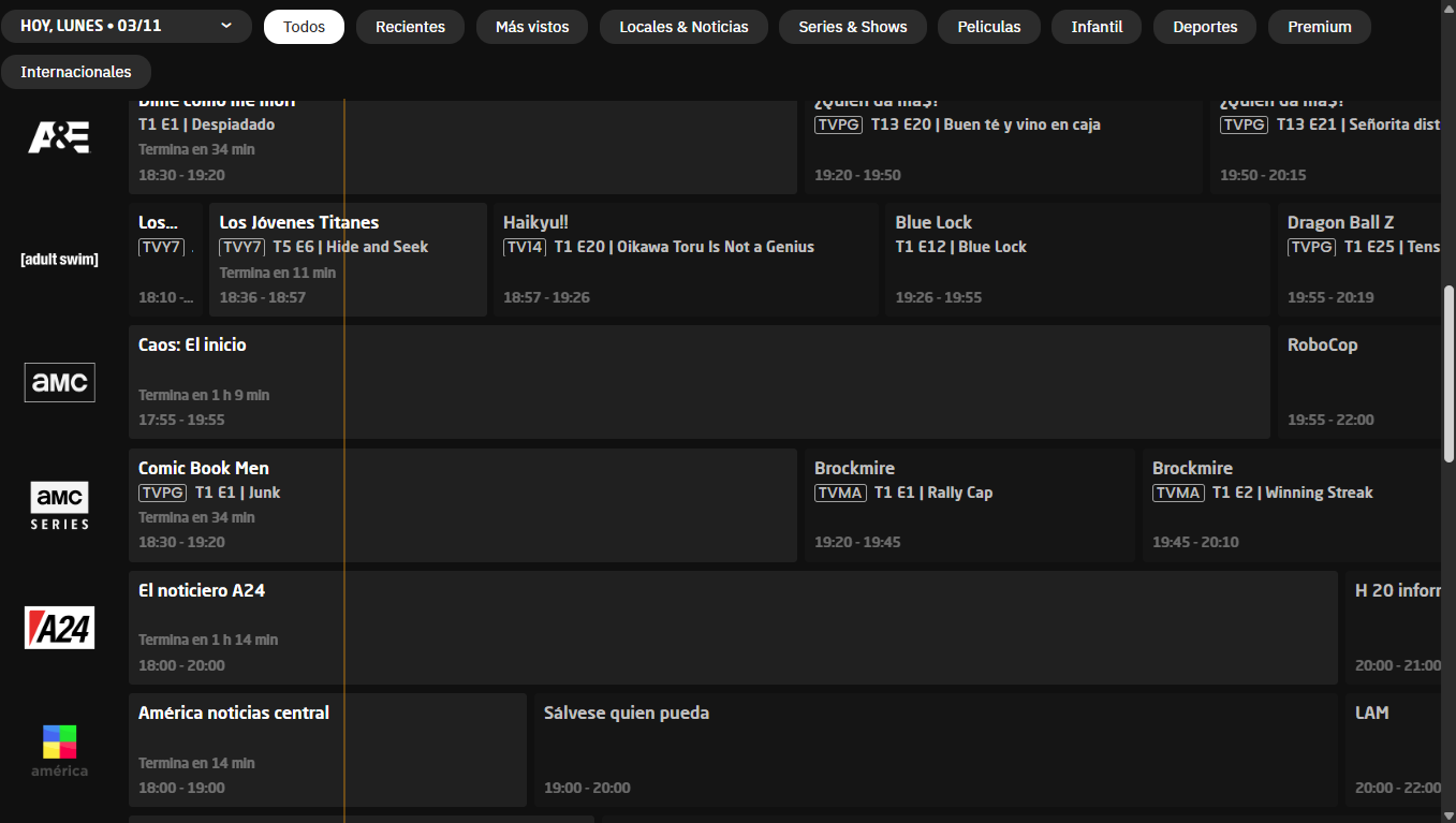 En Flow ya está ubicado en el 320 pero da error. En Movistar TV está en inglés sin subtitulos. En directvgo sigue mas chic.