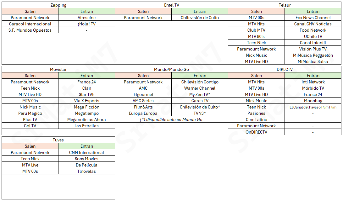 A partir del 1 de enero de 2026 y debido al cierre masivo de los canales de Paramount, las empresas de TV de paga en Chile ya están anunciando reemplazos y de paso retirando otros canales que si bien no son de Paramount, aprovechan este movimiento para renovar su parrilla.