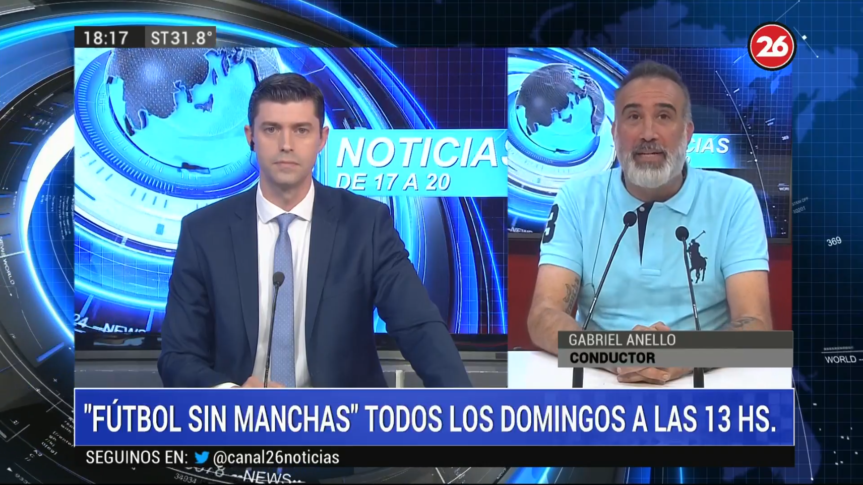 Ante la falta de presupuesto para que puedan tener más móviles en vivo o invitados en el piso (tienen que pagar un remise o Uber desde Capital hasta San Justo, y es caro), Canal 26 optó por un formato más similar a los canales europeos: un locutor en off presentando una noticia atrás de otra, utilizando las imágenes de las cableras internacionales como Reuters, AFP, EFE y Sputnik, y la cablera argentina Telam. Incluso han emitido informes completos de RT, Euronews, TVE y DW. Ahora están haciendo así, con una barrida en Vizrt que dice "Coronavirus: la pandemia". Además los nombres de los noticieros dan una idea de continuidad informativa, porque solo se llaman "Noticias de 6 a 8" y así con todos. Yo creo que es la solución más adecuada para tener un canal low cost, pero igualmente necesitan más invitados en el piso. En La Matanza hay muchos profesionales de la medicina que pueden hablar sobre el virus, y no les costaría nada contactarlos. También pueden recurrir a módulos 4G para las cámaras, con lo cual no se necesita una camioneta para móvil de exteriores