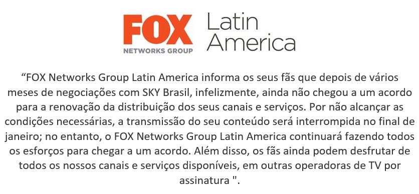 Ésta noticia parece ciencia ficción.. Sería uno de los golpes más duros y decepcionantes de la compañía.. Son tantos canales que nunca tendrán reemplazo a su nivel (CineCanal, Film Zone, FOX1 Este, FOX1 Oeste, FOX Comedy, FOX Action, FOX Movies, FOX Cinema, FOX Classics, FOX Family, FX, FOX, FOX Life, MundoFOX, FOX Sports, FOX Sports 2, FOX Sports 3, National Geographic, NatGeo Wild). Al menos DIRECTV no ha confirmado la noticia, hasta donde se todavía intentan hacer las negociaciones, esto es una advertencia de FOX!! Bien, y yo esperando a FOX News y Baby TV!!.