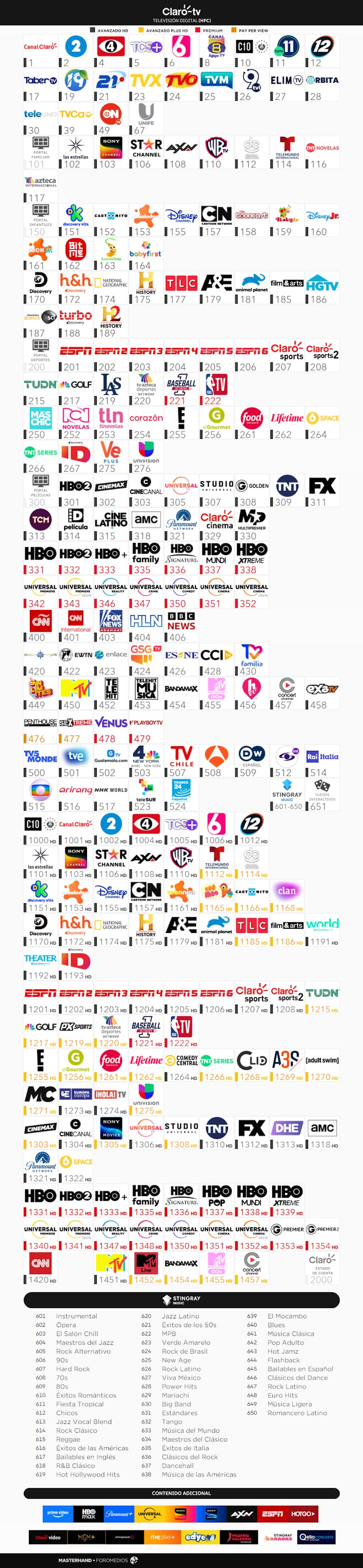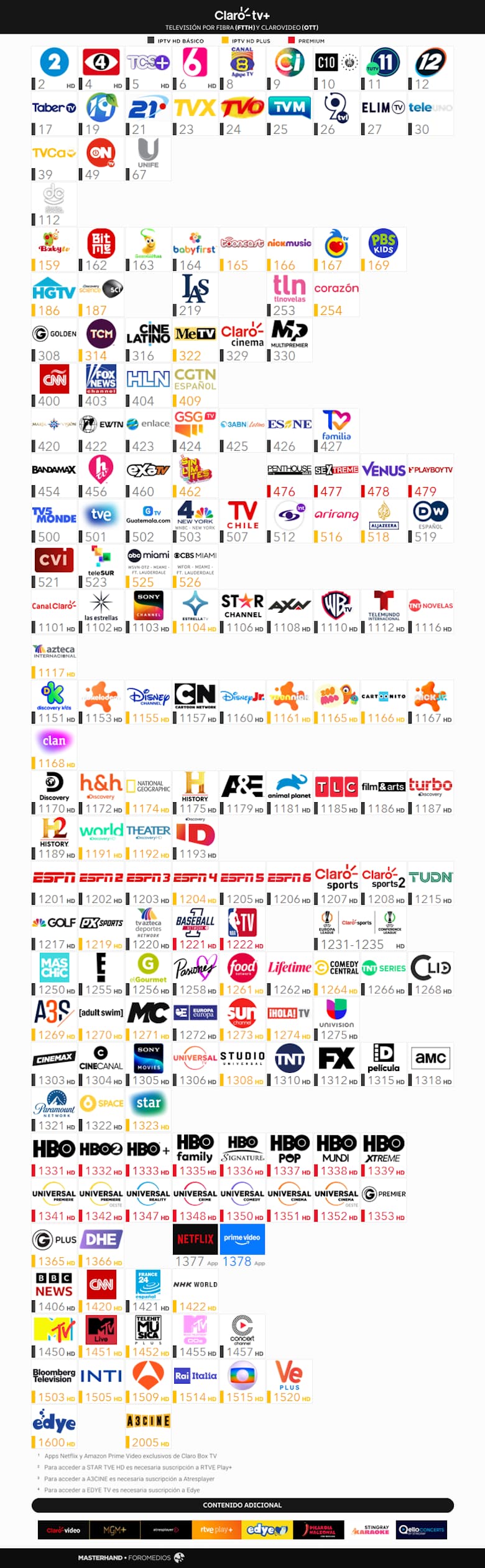 Debido a que los derechos de la UEFA Europa League / Conference League para la temporada 2025/26 son ahora compartidos con Tubi, los canales eventuales de Claro Sports se reducen a cinco (1231-1235).
