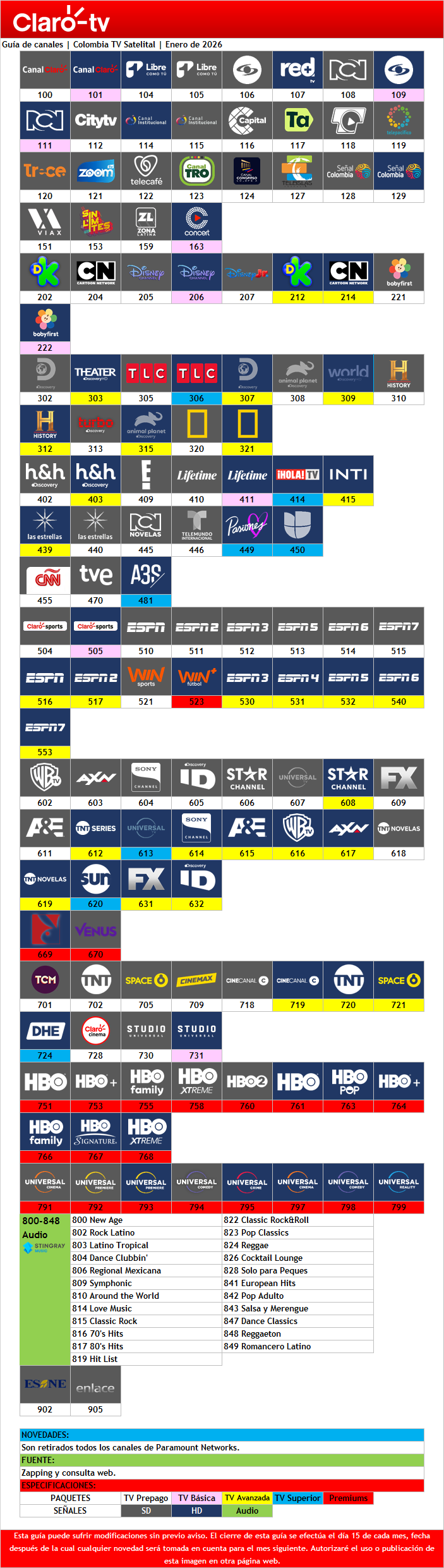 Debido a que se pensaba que Paramount+ ya no iba a ser ofrecido mediante otros proveedores (que resultó ser, de momento, que solo aplica a Brasil), Claro TV decidió prescindir de todos los canales y servicios de Paramount Global, no solo retirando el contenido de Paramount+ o los canales que fueron discontinuados, también los cuatro canales sobrevivientes. Así quedó la parrilla: