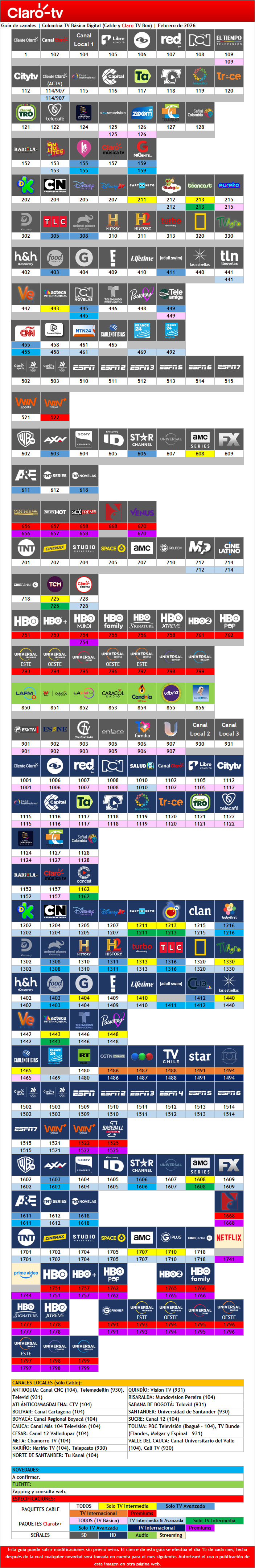 Claro TV Colombia - Guía de Canales (Febrero de 2026)