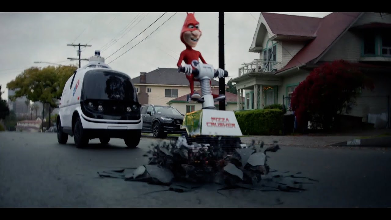 **- Domino's Pizza,** con la mascota **The Noid **en la **década de 1980.** Es un villano que se caracteriza por odiar la pizza y su misión es querer arruinarlas, pero nunca lo puede lograr con éxito con las pizzas de Domino's.