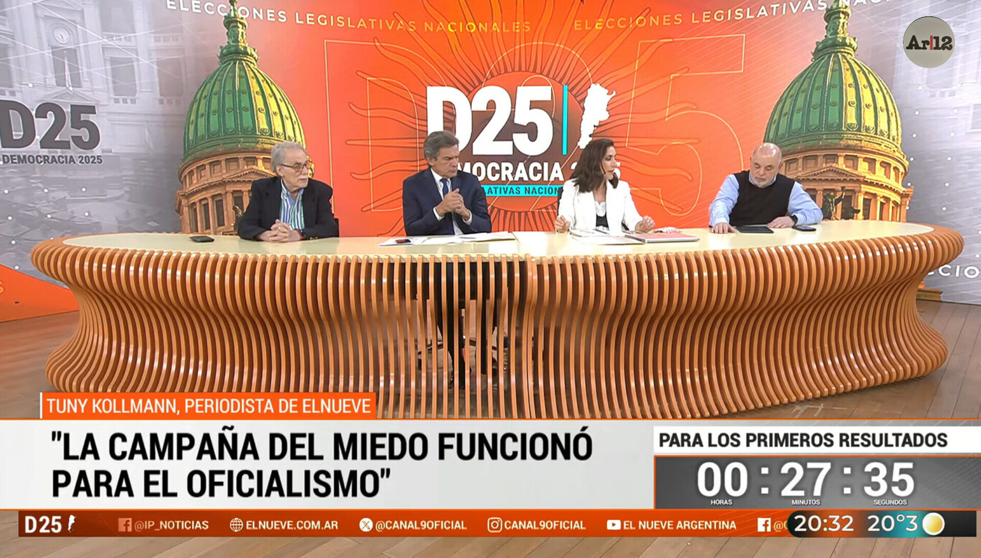 La gráfica de hoy para las Elecciones es parecida a Mediodía Noticias de Eltrece (y ni hablar de esas siglas D25 que también usan siempre los de Artear)