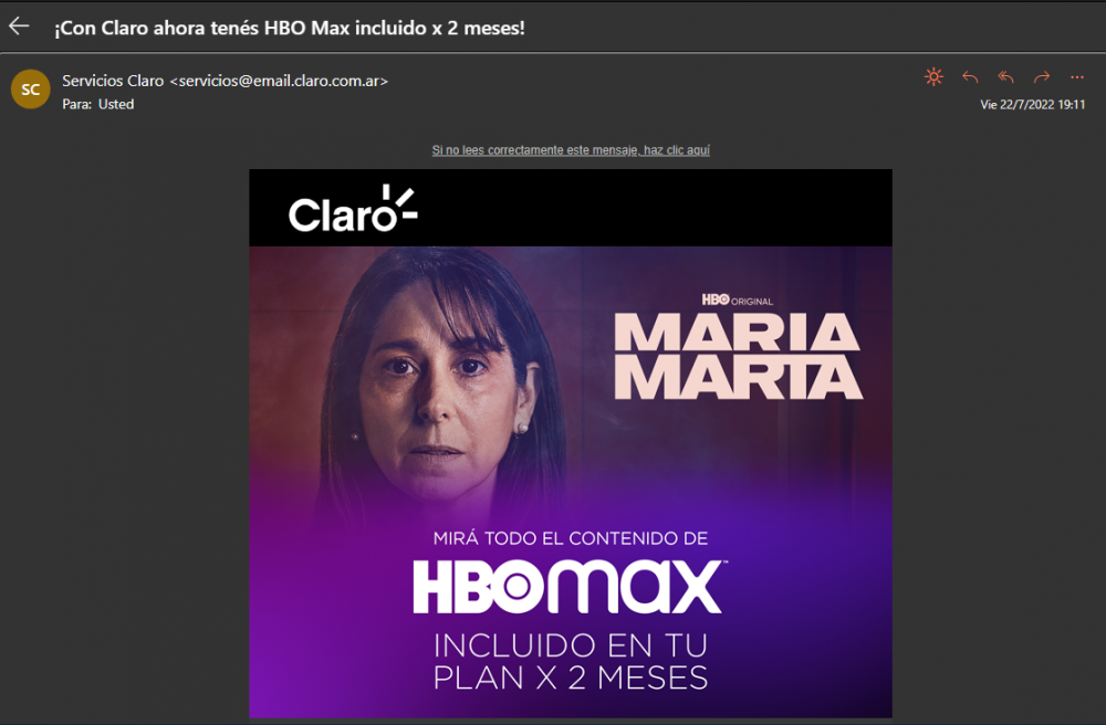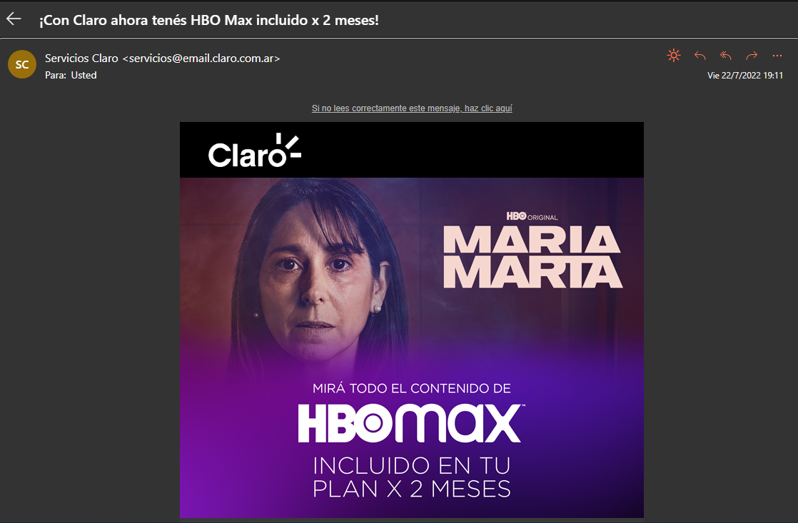 Vieron que claro mando el email promocionando los dos meses sin cargo de HBO Max, me da la idea que quizás dentro de poco agregan la app al deco como lo hicieron con amazon