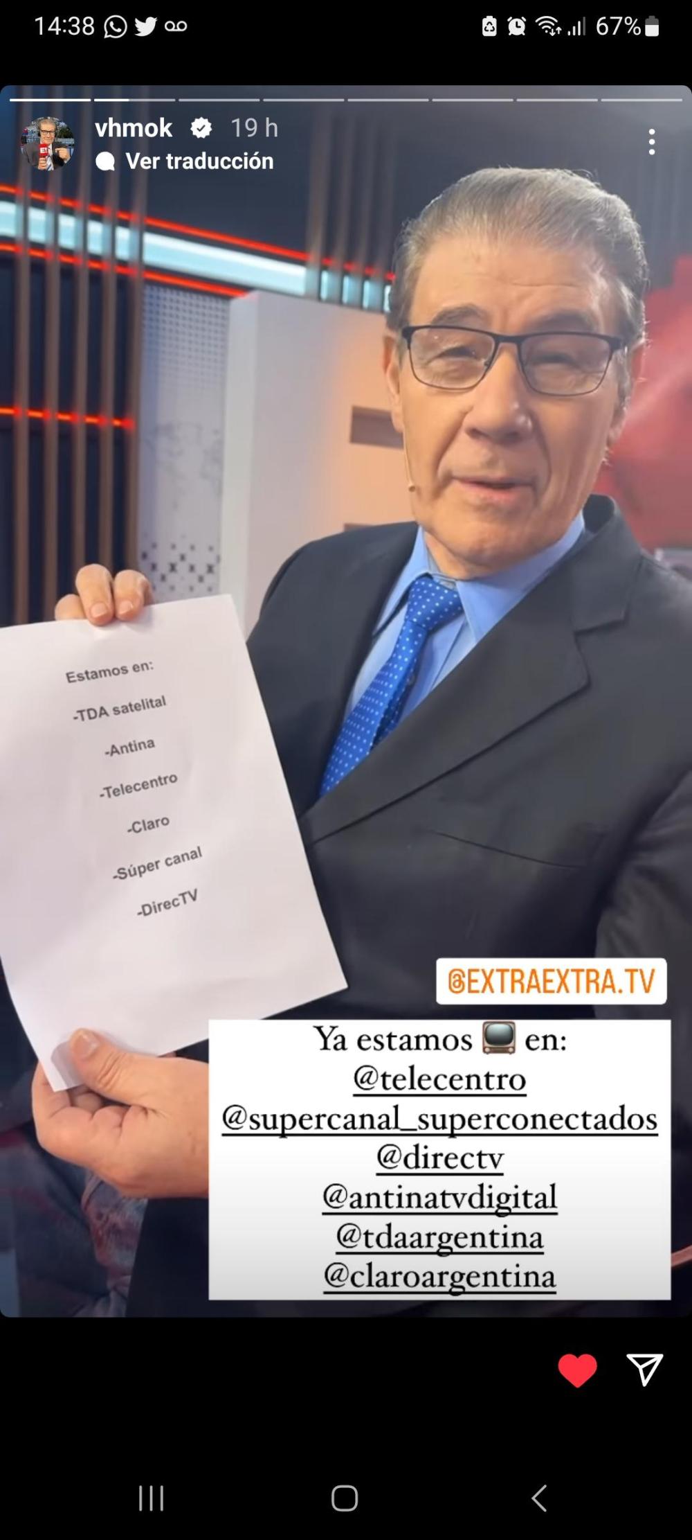 Según el periodista Victor Hugo Morales. Estaría ingresando en pocos días Extra tv a Claro tv.