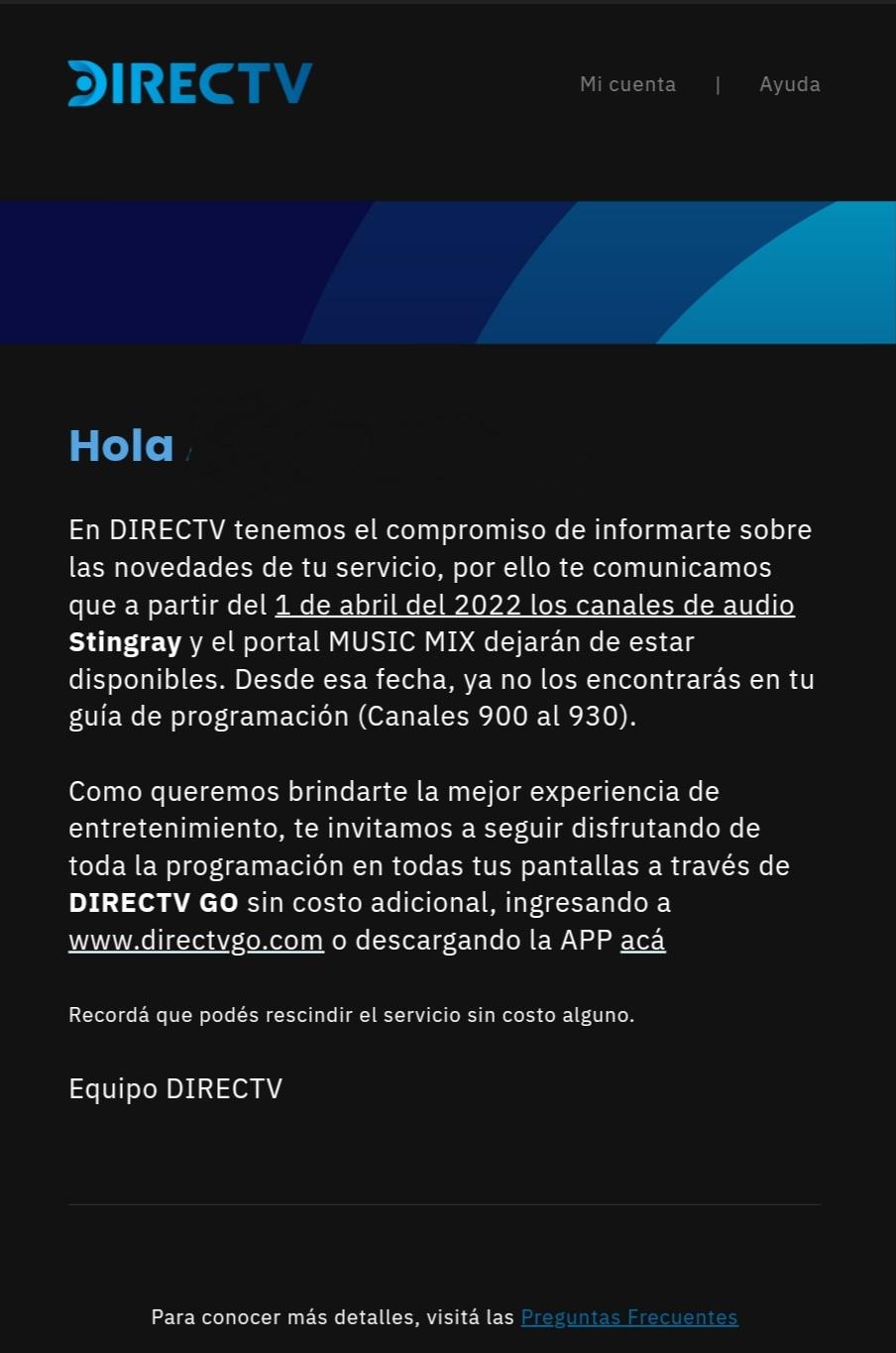 Quiero creer que con la salida de Stingray (canales que le servían a DTV para decir que tiene muuuchos canales) y la inminente muerte de los canales de Disney en marzo, DIRECTV va a sumar más señales, ¿no? Porque cada vez peor está.