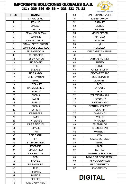 También lo que aclaro es la grilla digital está muy desordenada deberían ordenarla así como lo tienen en la grilla analógica, reducir de frecuencias y ampliar más de cobertura a otros sectores del camino ganadero que son Cavivir Sociego Gaviotas Villa Melida La Conquista Fikus y Valles De Aragón.