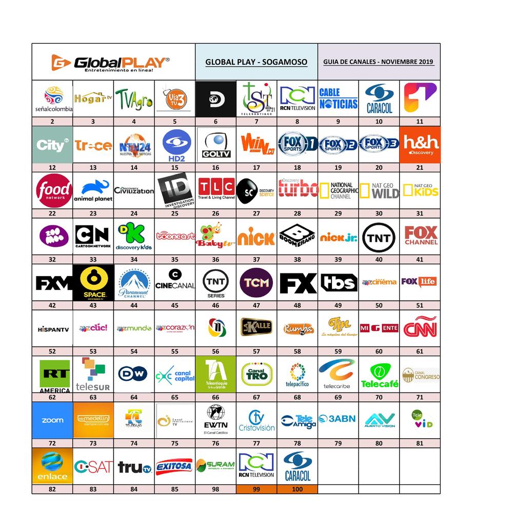 Cordial saludo desde Villavicencio: Global Play conserva programación de proveedores como Discovery, Fox, Turner y Global Media principalmente.