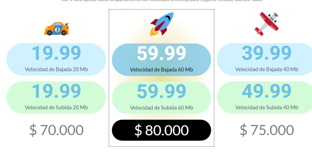 En sogamoso esta costando la mensualidad de solo tv 26.000 mil pesos, también ofrecen Internet y los planes son muy cómodos para el bolsillo del consumidor final, por ejemplo Internet de 5 megas + tv esta en $60.000 mil pesos , también tienen Internet de 10 megas + tv a $110.000 mil pesos.