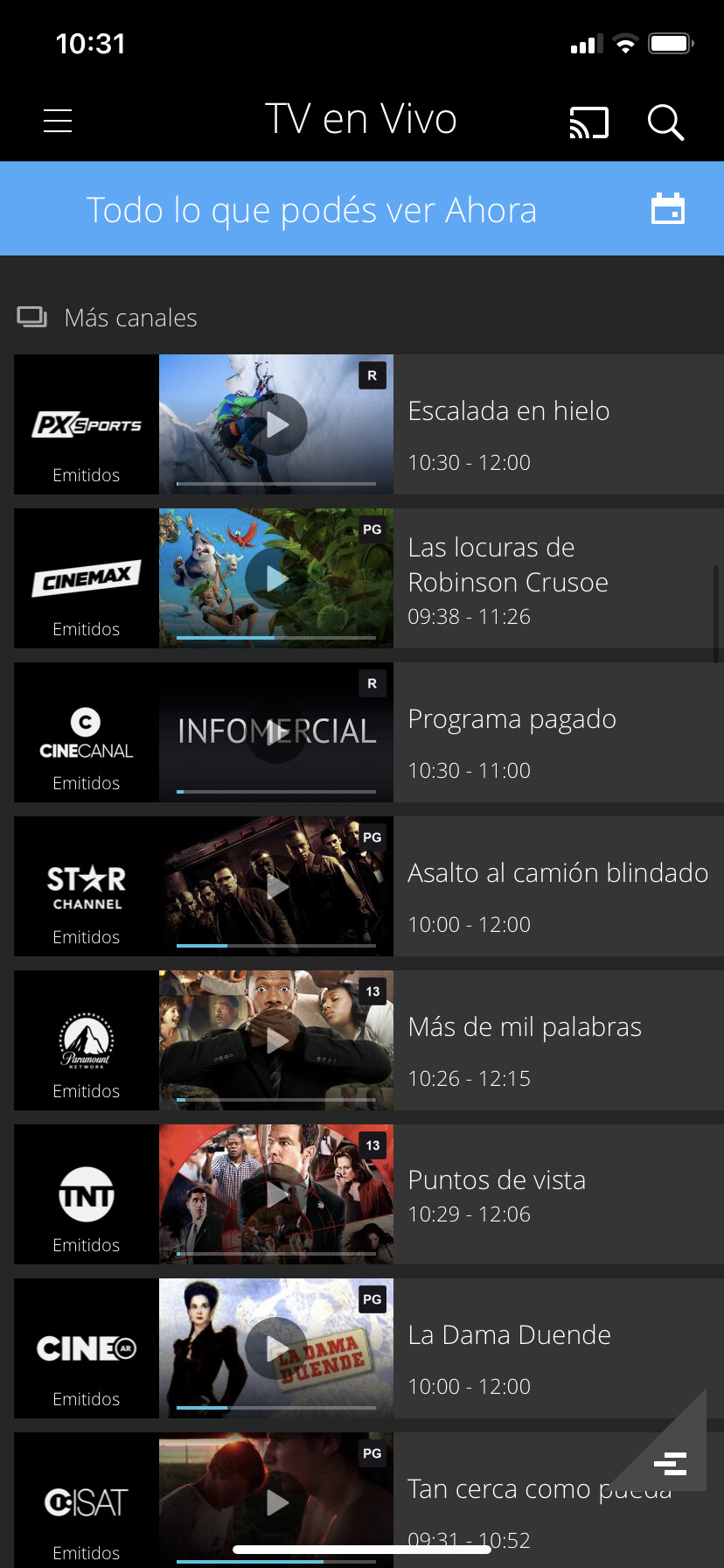 Hola, informo que hay unos bugs en la grilla de Movistar TV