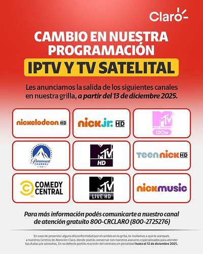Claro retirará 9 señales de Paramount Skydance en la región centroamericana, posiblemente debido a no renovación del contrato con la empresa de la montaña, a partir de 13 de diciembre, tanto en TV satelital como en IPTV. Aunque dicha información aplica inicialmente a Costa Rica