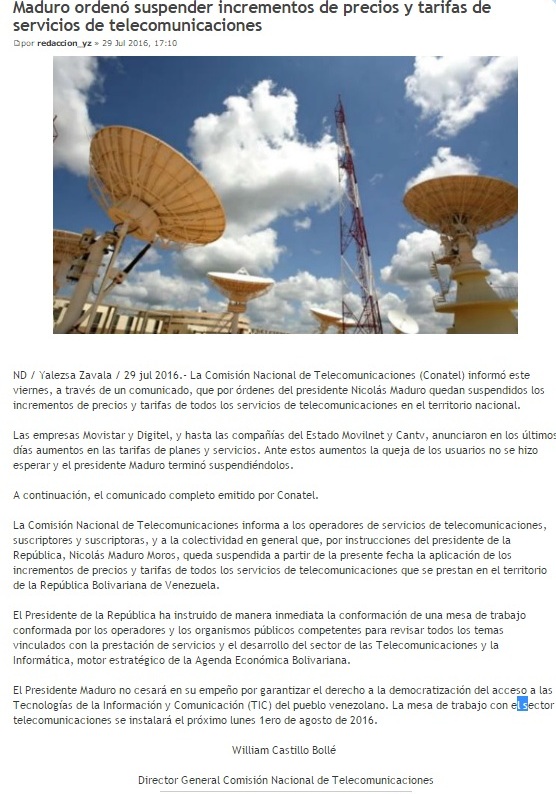 Por testimonios de una de las partes, se conoció que debido al servicio público que presta DirecTV, no se suspenda el mismo, sino que se afecte el trabajo administrativo y el congelamiento de cuentas bancarias.