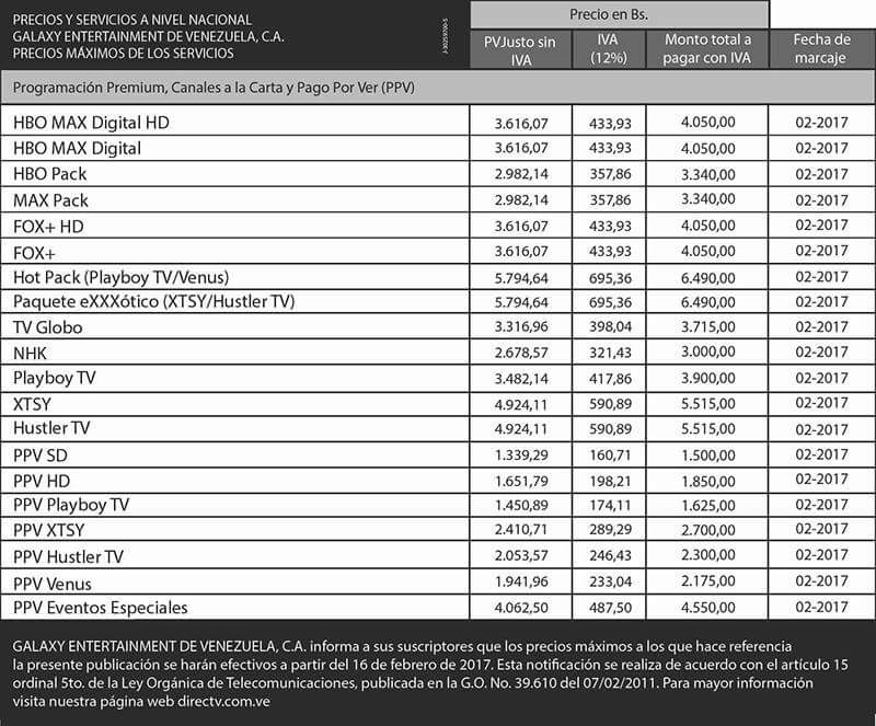 Nuevo ajuste en paquetes premium, a partir del 16 de febrero