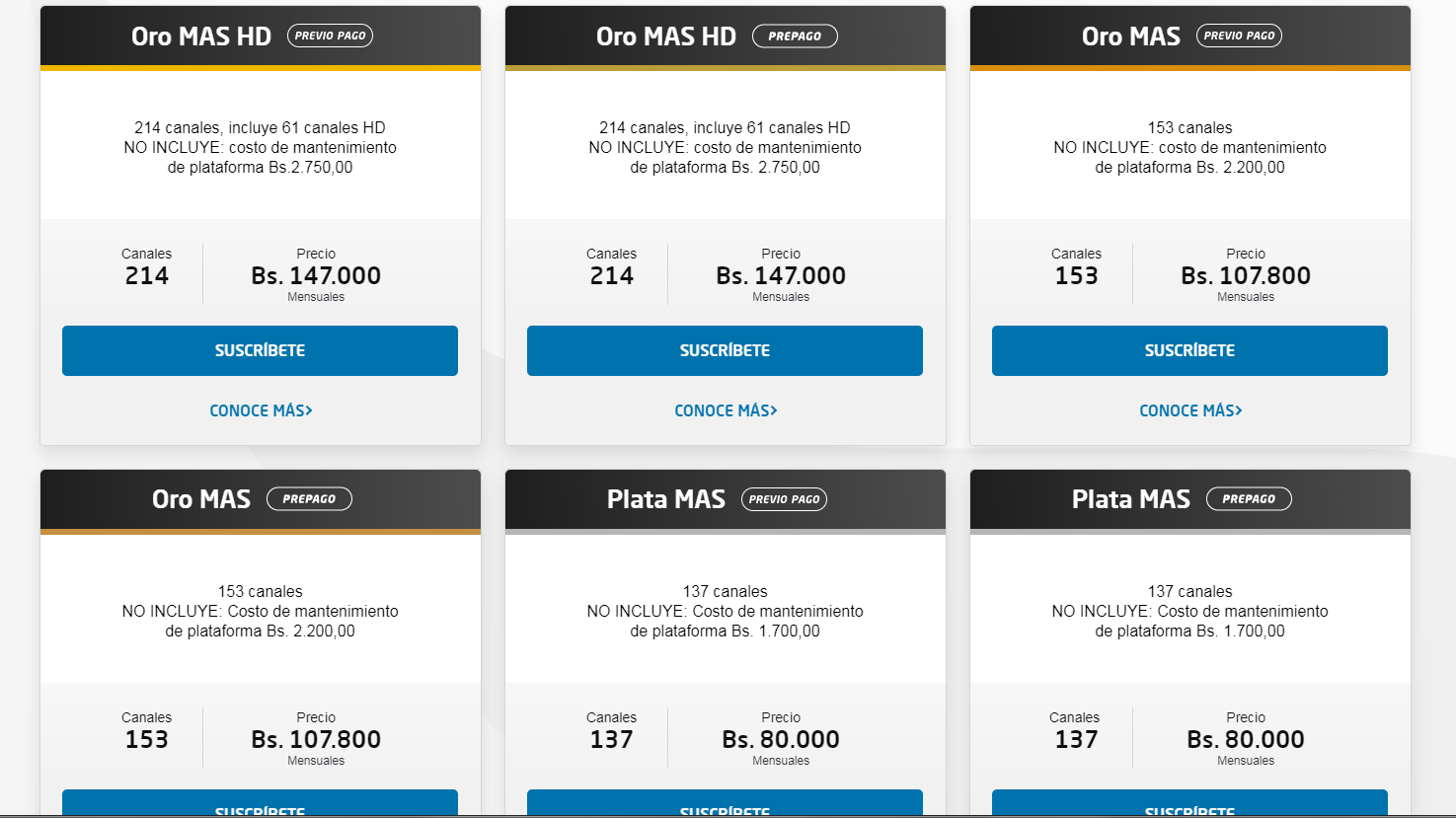 Los incrementos son poco o nada prácticamente. 6 mil Bolívares un paquete de HBO o de Fox Premium, teniendo en cuenta que el dólar está en 40.000Bs, no es nada realmente