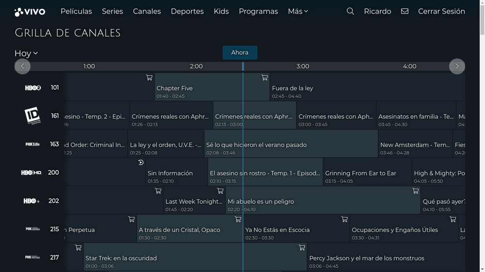 Hace bastante yo y varios clientes más del cable lo estábamos pidiendo, y llegó.** Finalmente, se incorporó grilla de programación a TCCVivo. **Lamentablemente aún es una función muy escondida en el sitio y a la cual le faltan cosas por pulir, pero algo es algo y se valora mucho. Esta guía tiene programación a 3 días tal como en los decodificadores y cuenta con los mismos diales del servicio de cable, excepto los exclusivos a los cuales les generaron números categorizados dentro del resto de señales de su género, como es el caso de BitMe (366), IVC (662), France24 en francés (663) y CGTN Español (664). La función de replay está solo disponible para HBO HD (200), h&h (399), ESPN 2 (551) y algunos programas de América Internacional (616).
