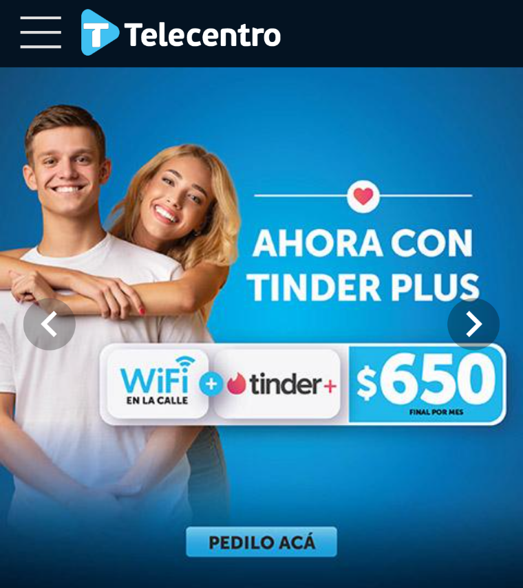 Telecentro tiene un nuevo pack. Ahora te dan Wifi en la calle con Tinder Plus. Listo, cada vez esto se pone más interesante. Intrigado de cual sea su nuevo pack para vender.