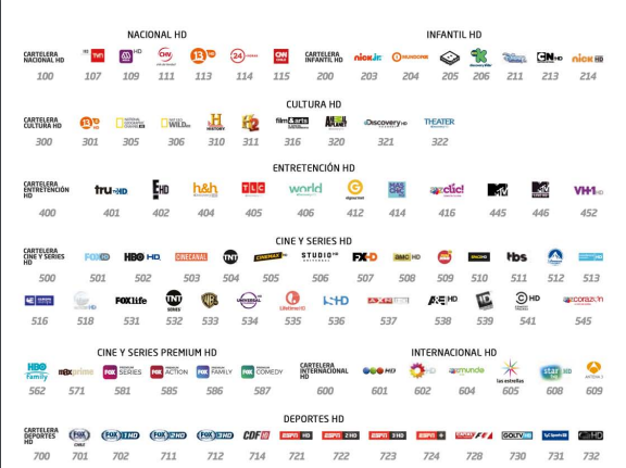 Los sd del 100 al 700 quedaran unificados junto a los sd del 1-99 desde el 1000 en categoría con similación entre hd y sd por ejemplo tvn hd 107 y sd 1107 y asi sucesivamente entre todos los canales