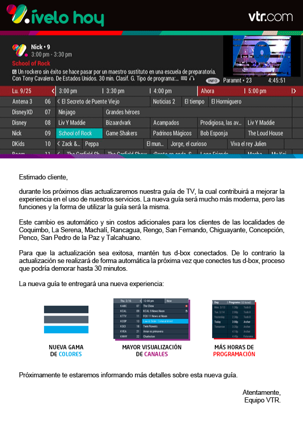 A mi, pero con la guía nueva me rebota con algunos contenidos del VOD me imagino q no se adapta muy bien la plataforma vod a la nueva guía esto es en Antofagasta por siaca