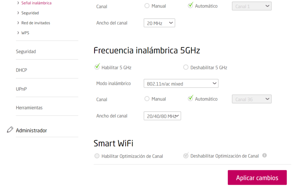 Ahora en el módem blanco apareció la opción “Smart Wifi” pero no permite activarla aún…a pesar que sigue con el mismo firmware actualizado a fines del 2018. Tengo la impresión que están preparando el módem para el d-BOX Smart.