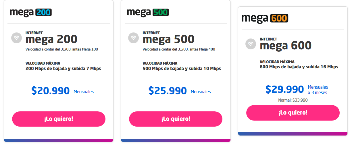 A partir del 31-marzo Mega100/7 pasa a Mega200/7 y Mega400/10 pasa a Mega500/10 en planes hogares.