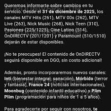 No solo se van las señales musicales temáticas de MTV, TeenNick y Paramount Network como en los demás proveedores. También sacaron las señales de Hemisphere Media Group y dejó de existir OnDirecTV. Las parrillas de DirecTV y DGO para el primer mes del año quedó así: