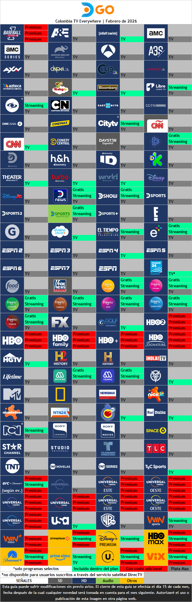 (el paquete Plata Max solo está disponible para usuarios suscritos a través del servicio satelital (DirecTV) que posean el paquete del mismo nombre)