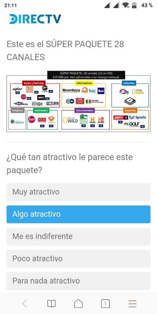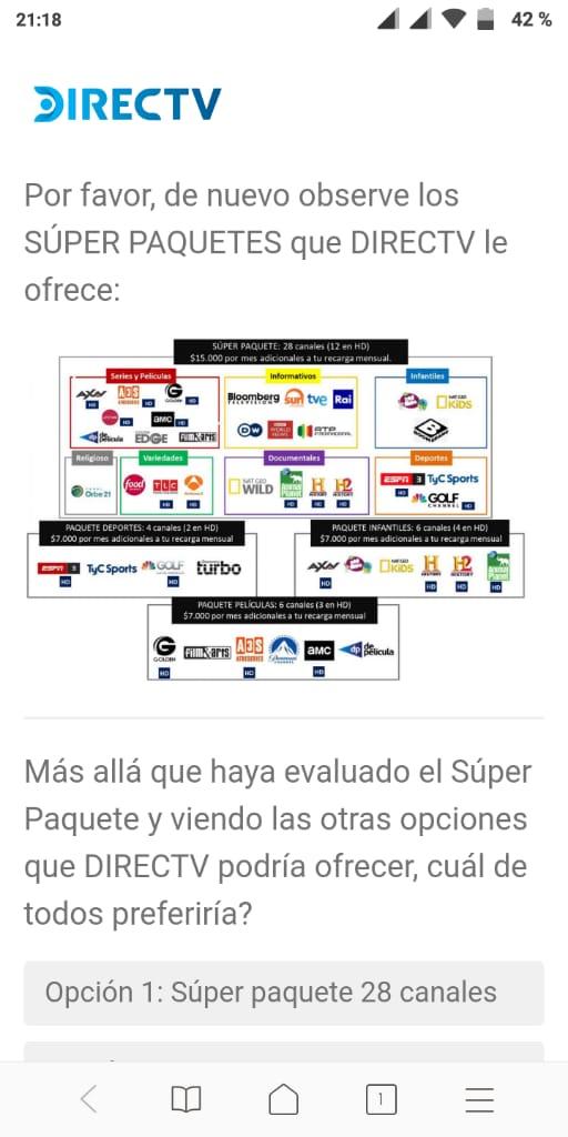Finalmente, buena idea la encuesta de DirecTV para conocer más el gusto de los clientes.
