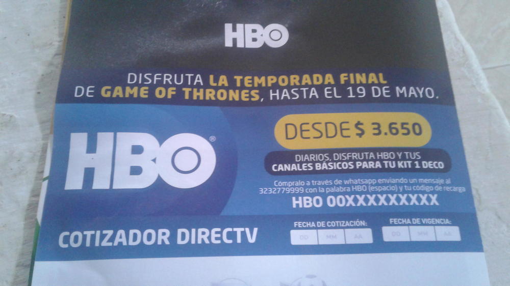 He agarrado el folleto de este mes y el paquete HBO desde $ 3.650 diarios