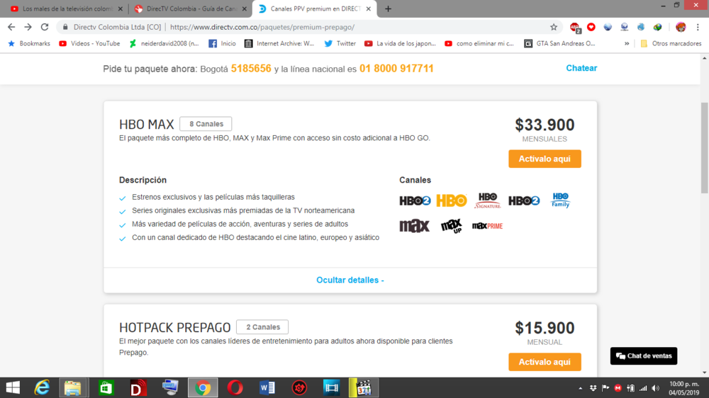 En el año 2012 lanzaron el Prepago ideal con dos decodificadores, yo compré ese plan y ahí traía canales como Animal Planet y Cinemax.