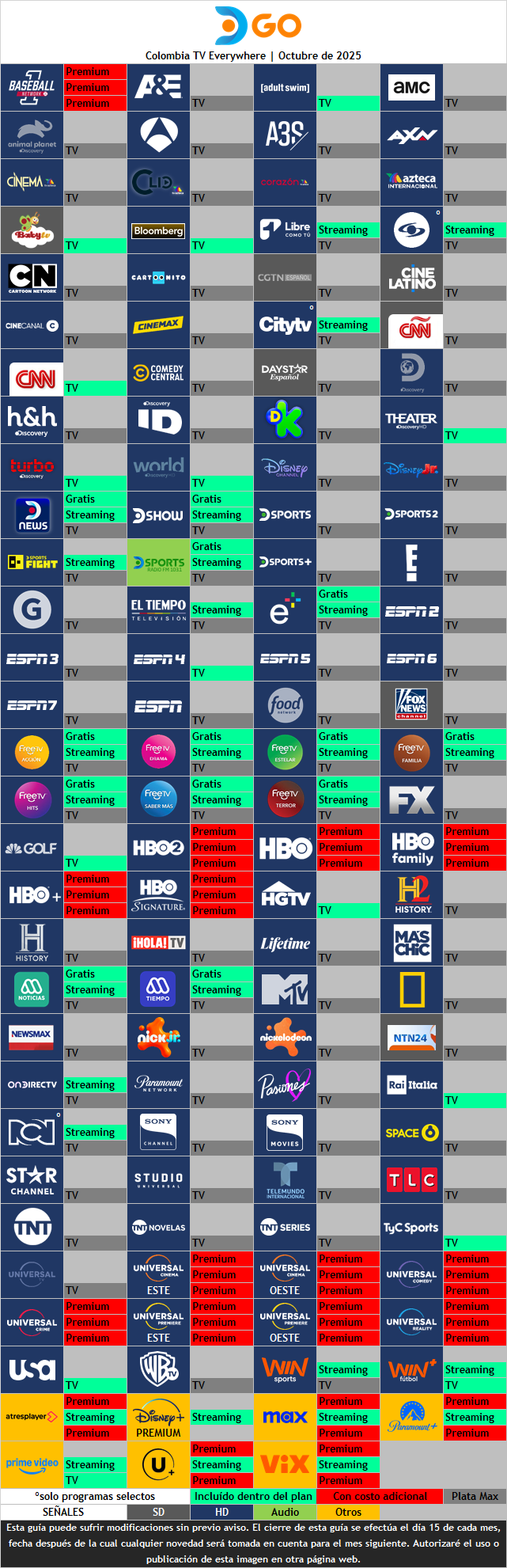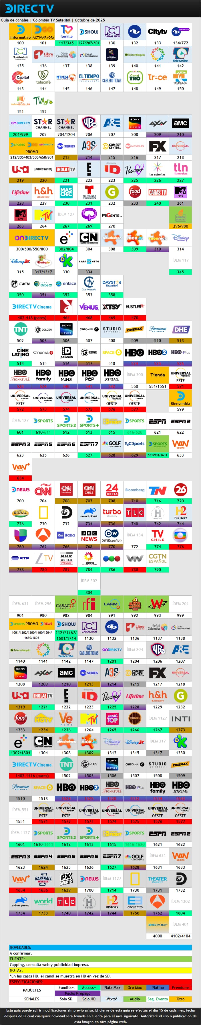 DirecTV Colombia - Guía de Canales (Octubre de 2025)