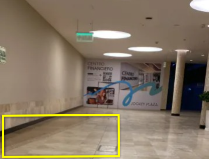La entrada: El punto exacto de la entrada de Utopía y la plataforma con escaleras sobre la que se encontraba, al parecer fue demolido y sellado (¿cuánto tiempo habrá pasado hasta que se desmontó por completo? ¿qué habrá sido en los meses siguientes, parte del pasadizo, bancas, plantas?). Lo que sí se sabe es que la parte de al fondo de esa entrada desmontada fue reutilizada años después (desde 2012) para ser el segundo acceso al Centro Financiero. Cuando este se mudó en 2023, el espacio de esa entrada fue tapada y permanece así hasta el día de hoy, un muro ciego en un pasillo, tal como se ve en esta foto que publicó , al lado derecho están las escaleras eléctricas que vienen de Plaza Vea. (en el cuadrado amarillo, presuntamente habría estado la escalera y la plataforma de las fotos anteriores donde habría estado ubicada la entrada a Utopía) Y miren, las dos columnas redondas coinciden con las de la foto de arriba.