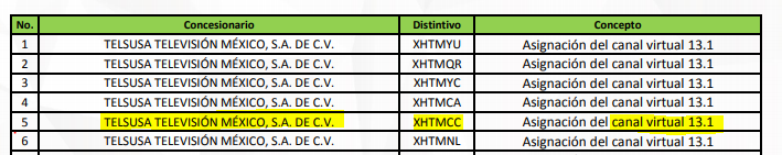 En la licitación IFT-6 realizada por el Instituto Federal de Telecomunicaciones, le fue adjudicado 12 canales, entre ellos: