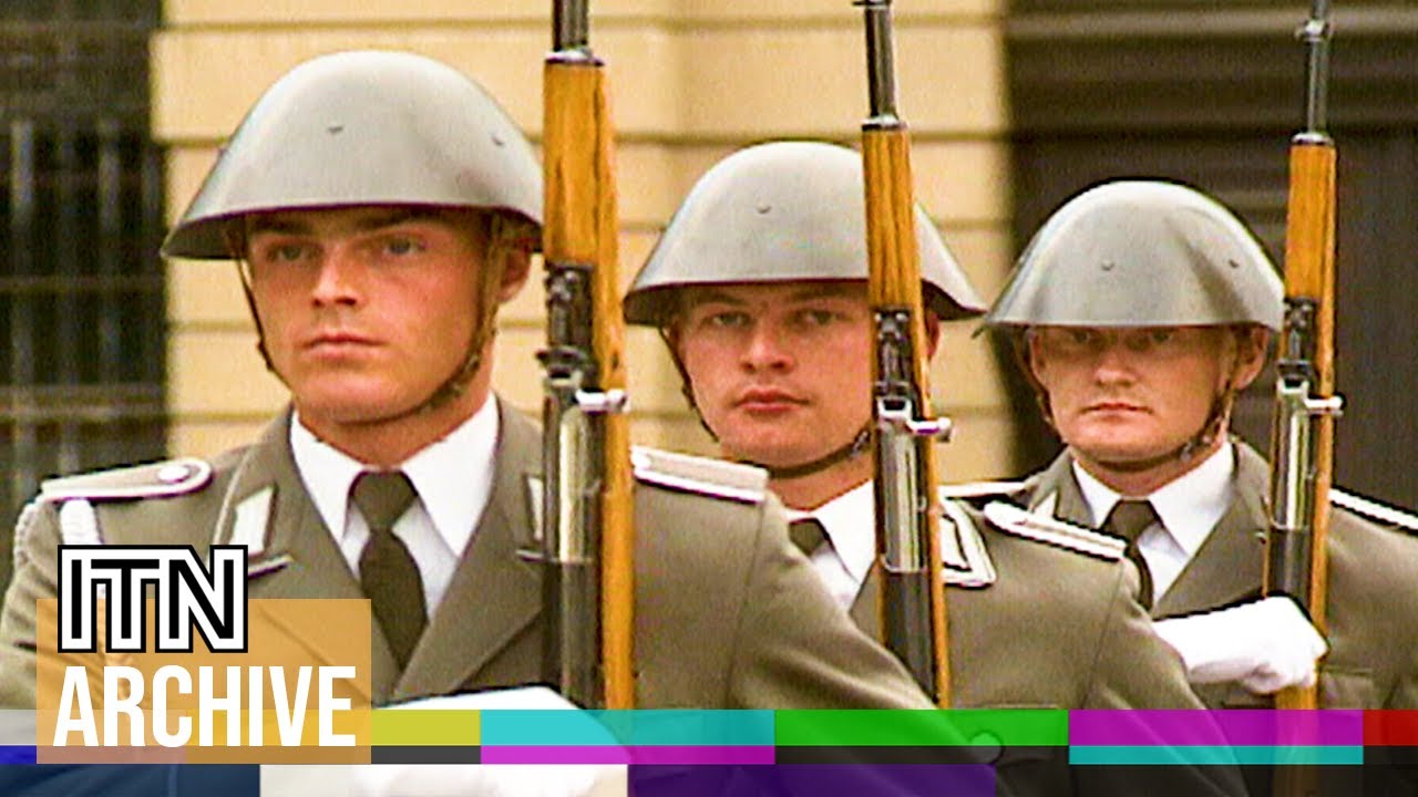 Ahora les mostraré a **Berlín Oriental (1989)**, en este reportaje producido por ITN de Reino Unido. El video empieza con la marcha de los soldados vigilando el muro, para seguir con un recorrido por las principales calles de la ciudad, las cuales se encuentran vacías. Se destaca a lo lejos la Berliner Fernsehturn, la torre más alta de Europa. En otra escena aparecen unos niños jugando en un parque, más tomas del centro de la ciudad, la gente caminando por las calles, la construcción de un condominio de viviendas, para finalizar con la toma aérea de esta gris ciudad: