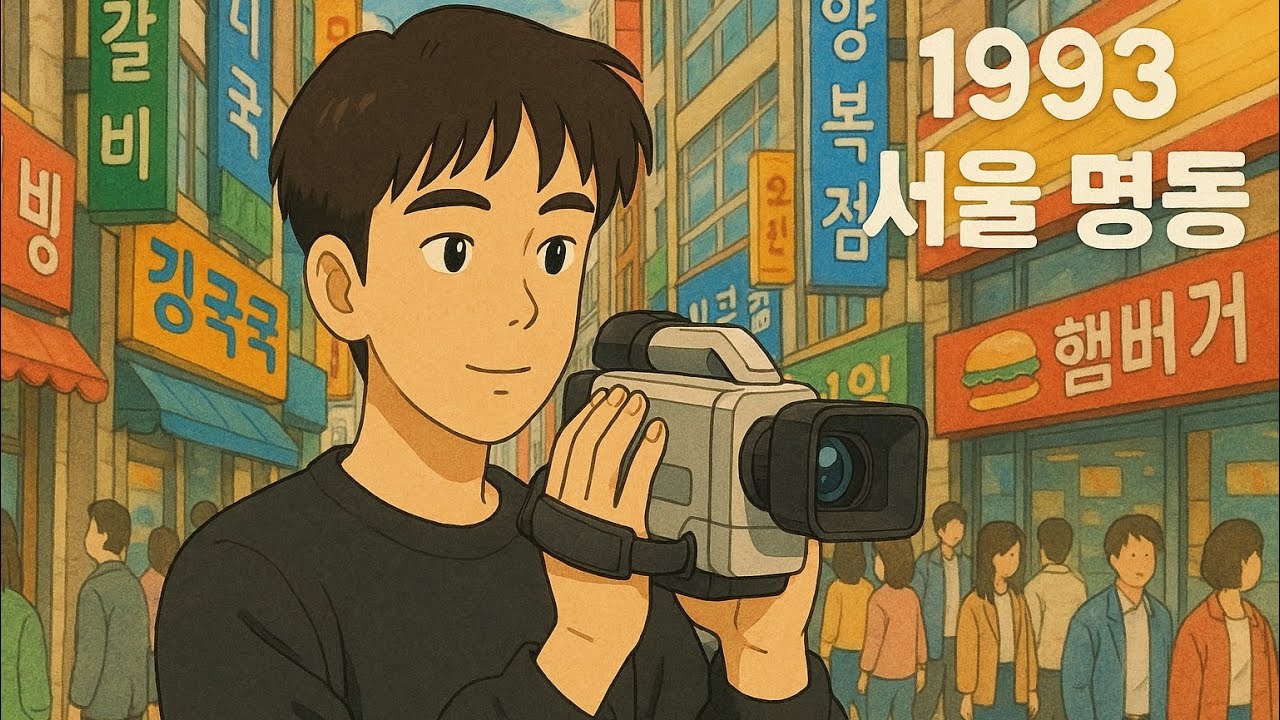 - El barrio de **Myeong-Dong** en **1993,** una gran área comercial de la capital.