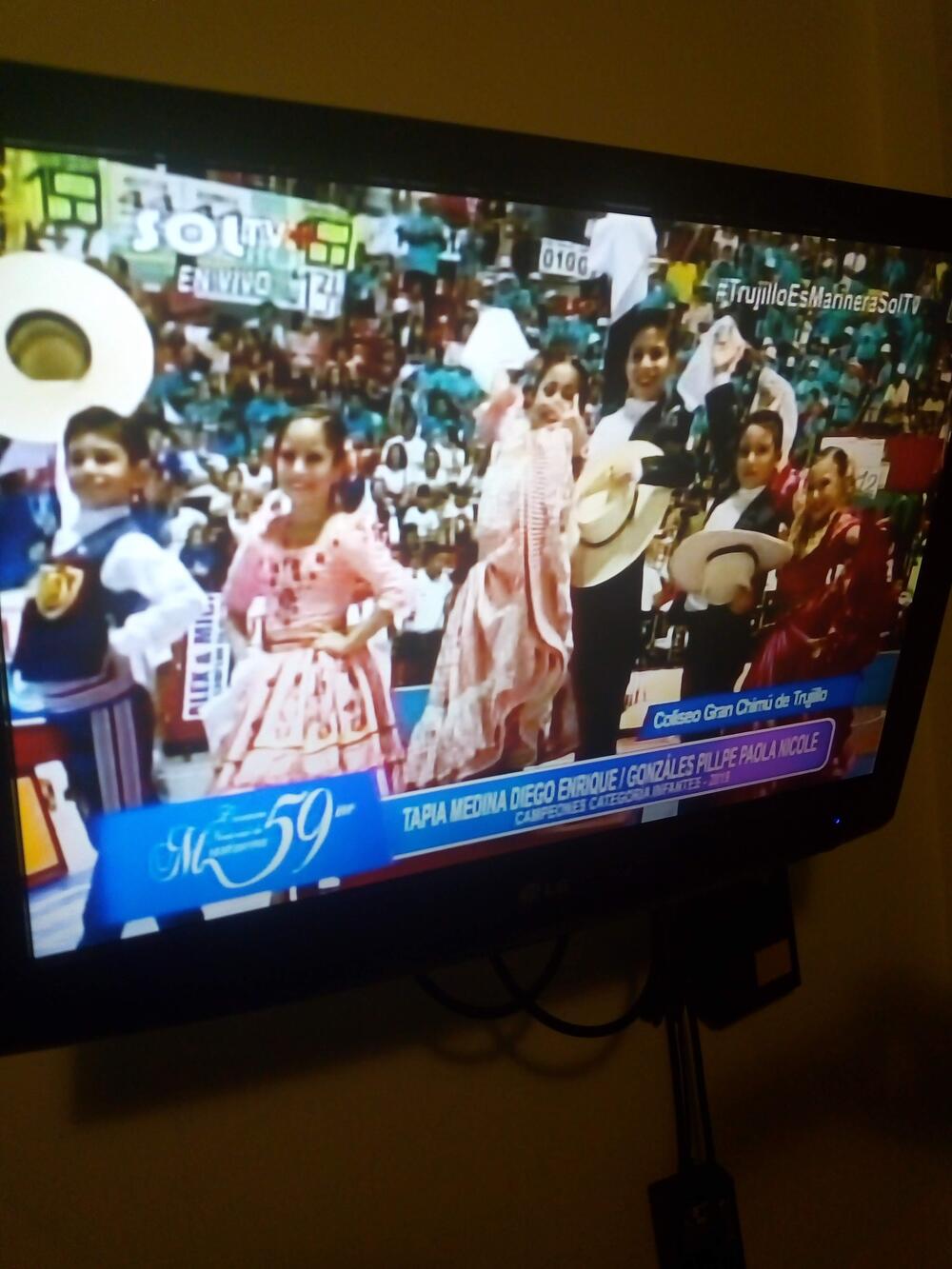 Acabo de encontrar este errorcillo de Sol TV, del 27 de enero de 2019, durante las transmisiones del 59° Concurso Nacional de Marinera que se llevó a cabo, como todos los años, en Trujillo (lo organiza el Club Libertad, de la Ciudad de la Eterna Primavera). En esa edición participaba en la categoría Infantes la pareja conformada por Diego Tapia Medina y Paola González Pillpe. Como es usual en medios peruanos, escribieron mal el primer apellido de la niña y quedó como GONZÁLES… un error ortográfico muy peruano (la RAE solo acepta González y Gonzales).