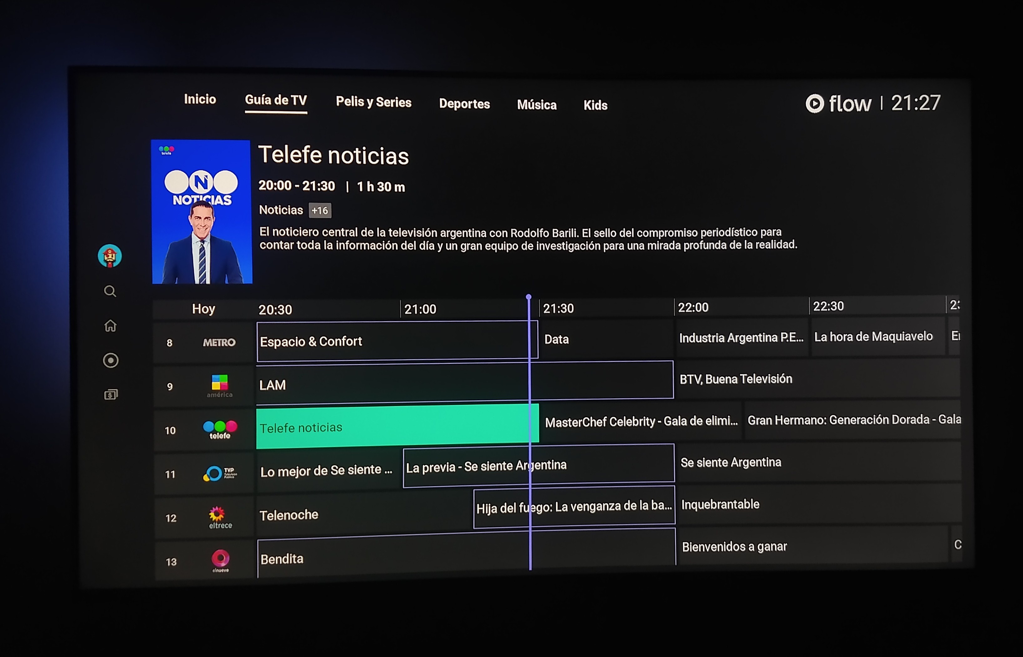 Buenas. Acabo de encontrar un video en twitter con esta imagen en donde en la guía se ve la descripción del programa que se selecciona. Será una nueva actualización que se viene o en algunos lados la app de flow se ve así?