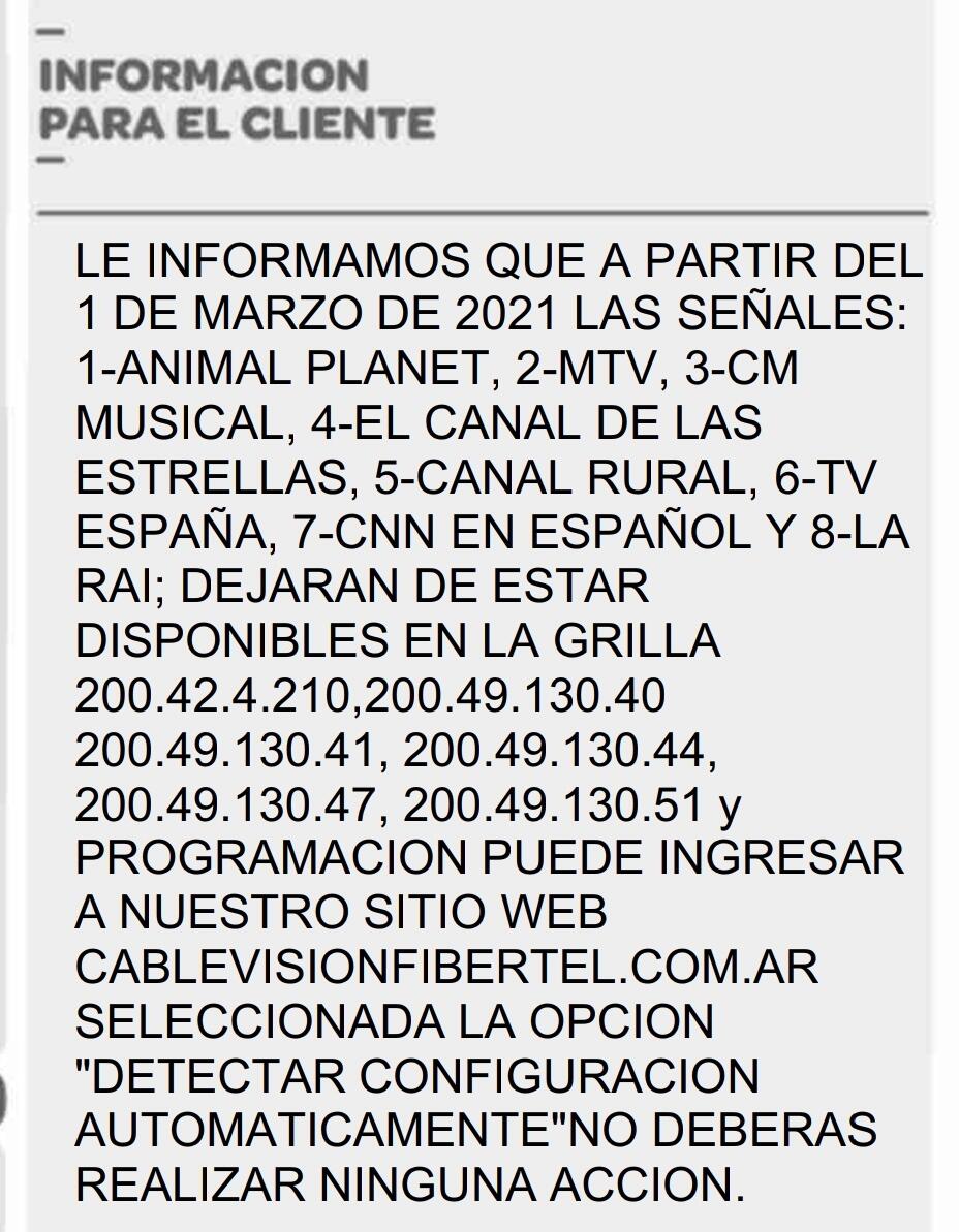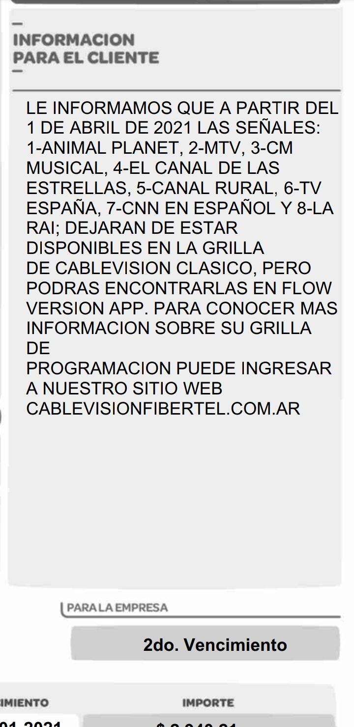 Soy de CABA, trabajo en una empresa que tiene contratado el servicio de Flow y Internet a través de FiberCorp. En la factura que vence en enero, apareció ese mensaje.