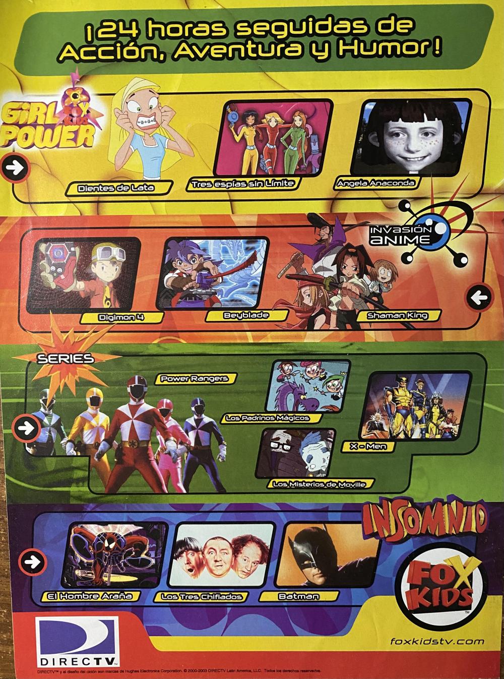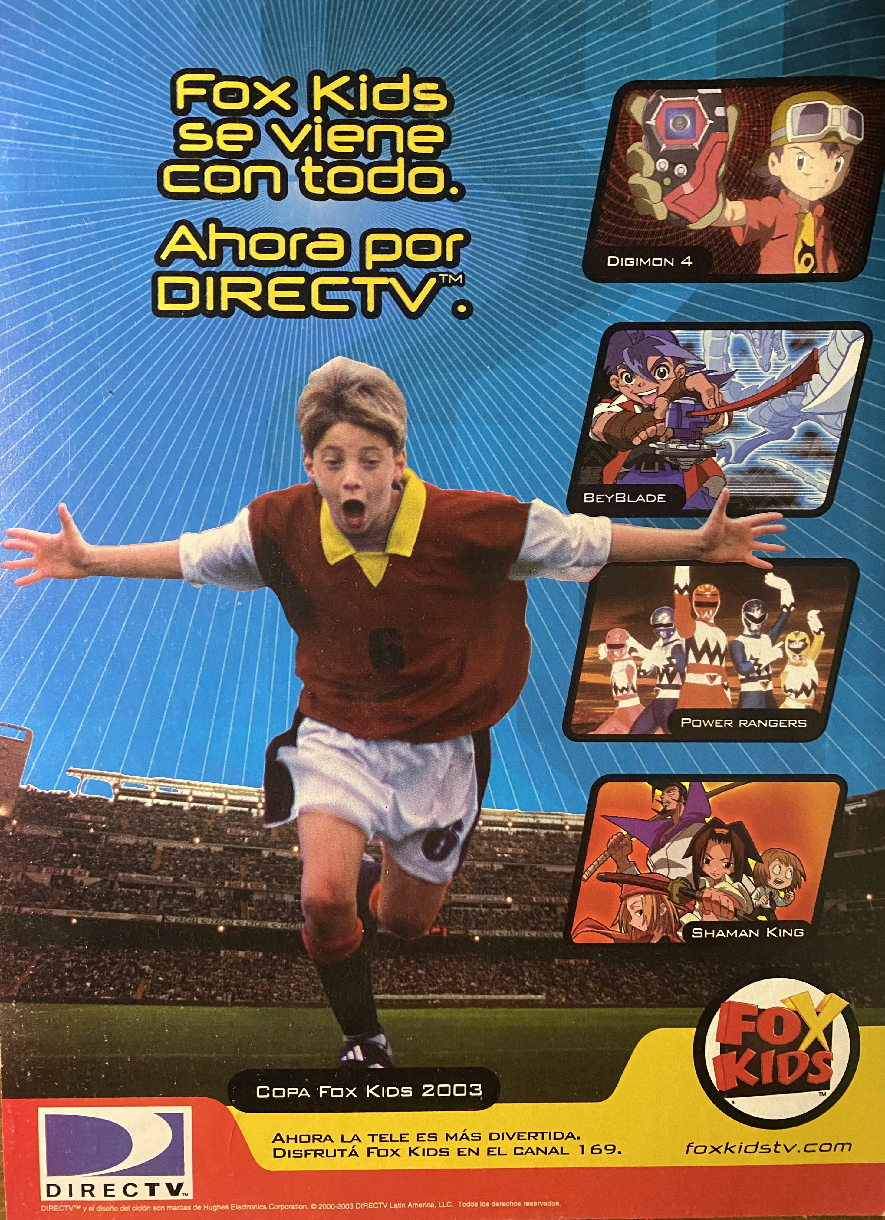 Adjunto foto del folleto de Directv Uruguay año 2003 promocionando la incorporación a la grilla del canal 169 - Fox Kids.