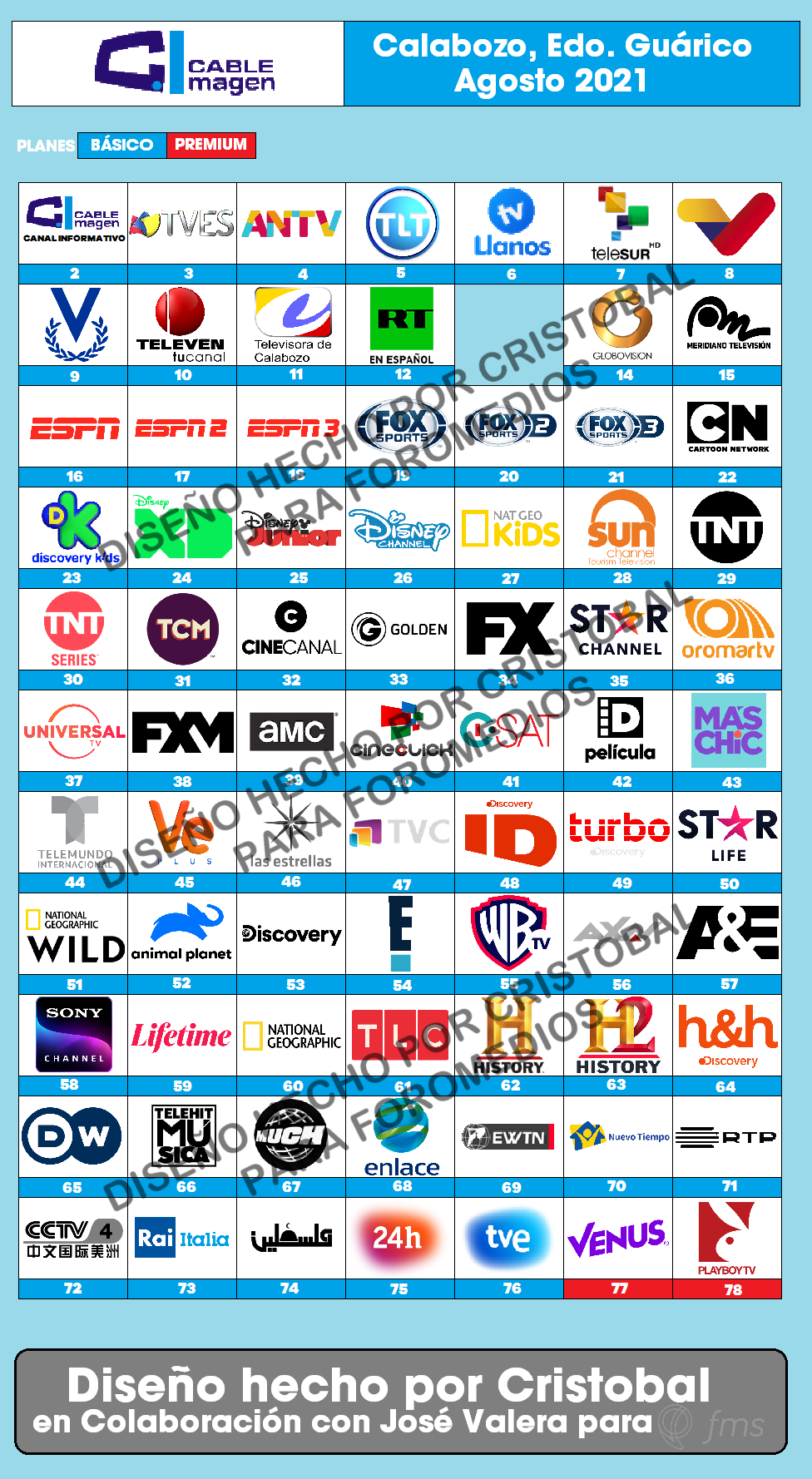 * Canales 77 y 78 que aparecen codificados son Venus y Playboy respectivamente