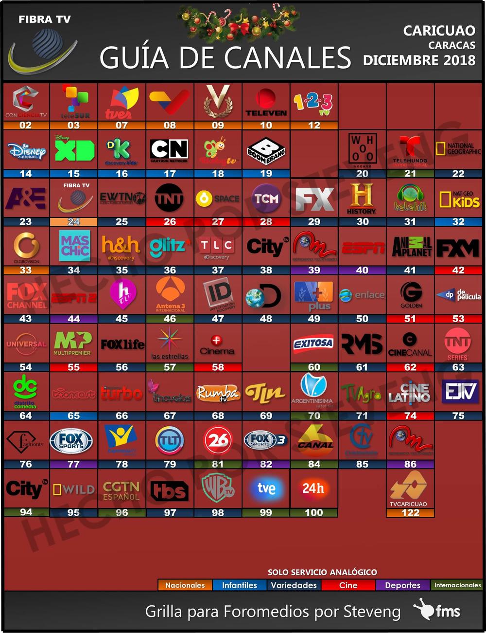 Aquí la grilla de diciembre 2018 de Fibra TV. Es un un pequeño cableoperador de la parroquia Caricuao ubicada en Caracas